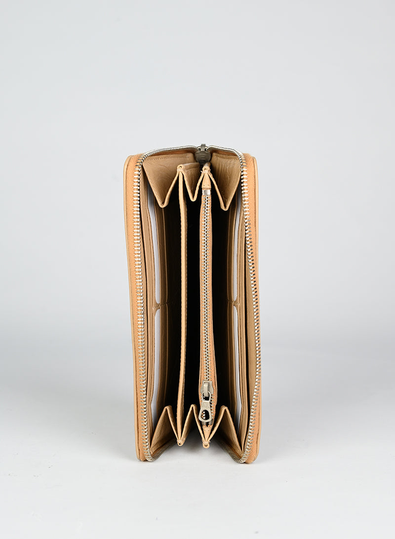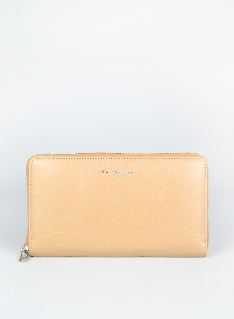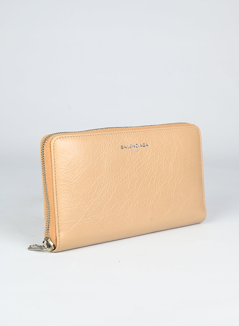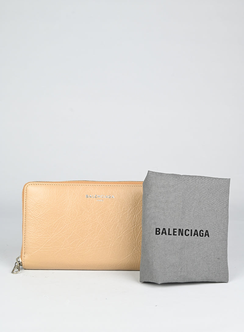 Raffinato e di lusso, il Balenciaga Portafogli in pelle beige è perfetto per gli amanti dello stile senza tempo. La morbida pelle beige effetto used si abbina alla chiusura a zip argento all around, mentre gli interni offrono 5 scomparti spaziosi e vari scomparti per carte. Ideale per tenere tutto in ordine con un tocco di eleganza.