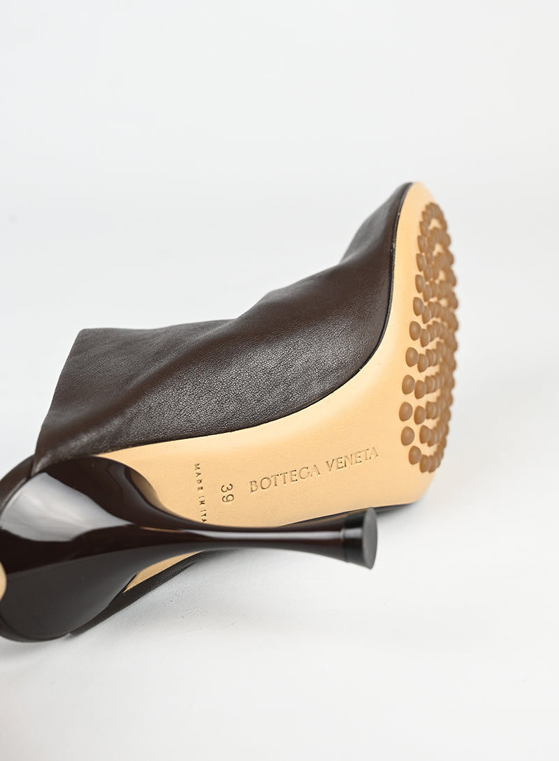 Elegante sabot Bottega Veneta in pelle marrone con tacco stiletto laccato, un capolavoro di artigianalità italiana. Questo modello numero 39 combina il design minimalista della maison con dettagli raffinati: la pelle morbida e pregiata garantisce comfort durante la giornata, mentre il tacco stiletto laccato aggiunge un tocco di sofisticatezza. Perfetto per chi ricerca un accessorio versatile e senza tempo, capace di elevare qualsiasi look con discrezione e classe. Una scelta consapevole per chi apprezza la qualità e l'eccellenza del lusso vintage.