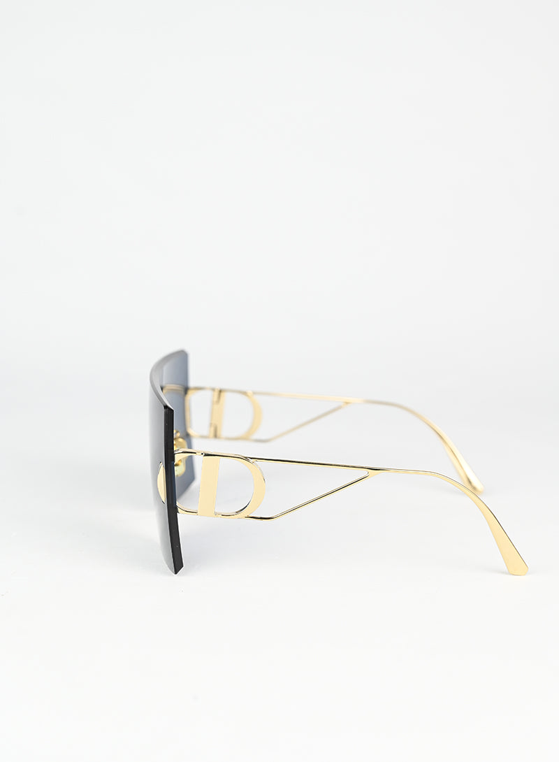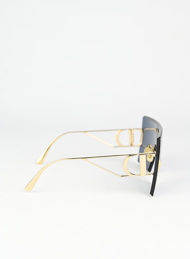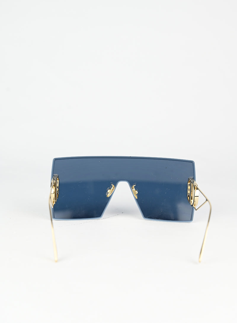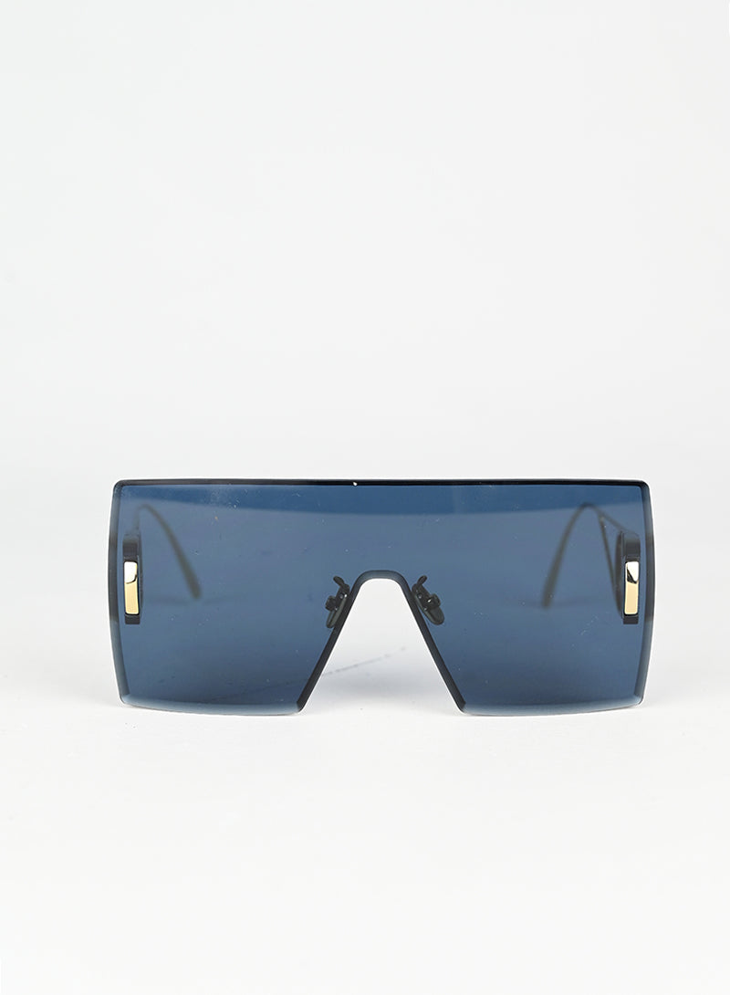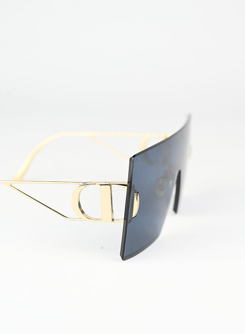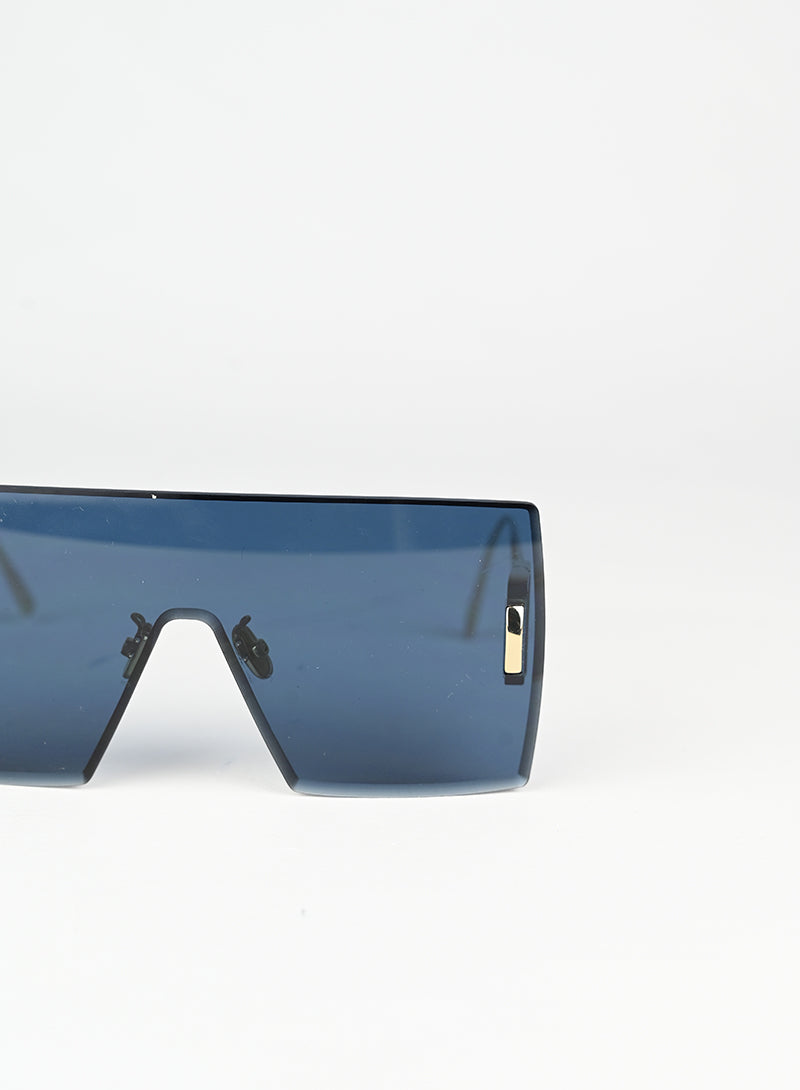 Occhiali da sole Dior con montatura a mascherina squadrata in blu intenso, caratterizzati da aste in metallo dorato che esaltano il design iconico. Il grande logo D impresso sulle aste conferisce un tocco di lusso riconoscibile al primo sguardo. Perfetti per chi desidera uno stile audace e contemporaneo, questi occhiali combinano eleganza senza tempo con una silhouette moderna e affascinante.