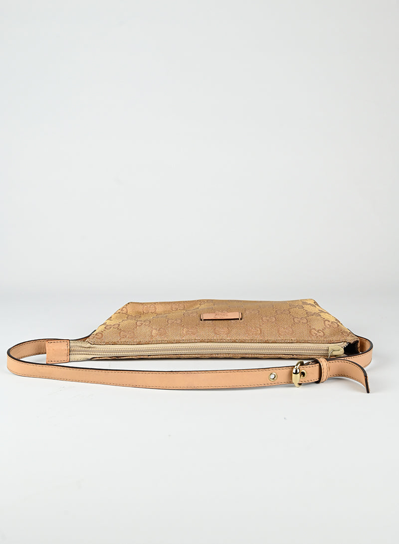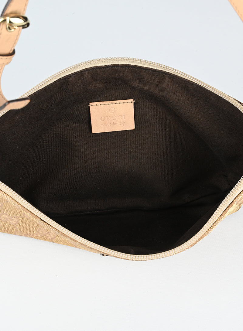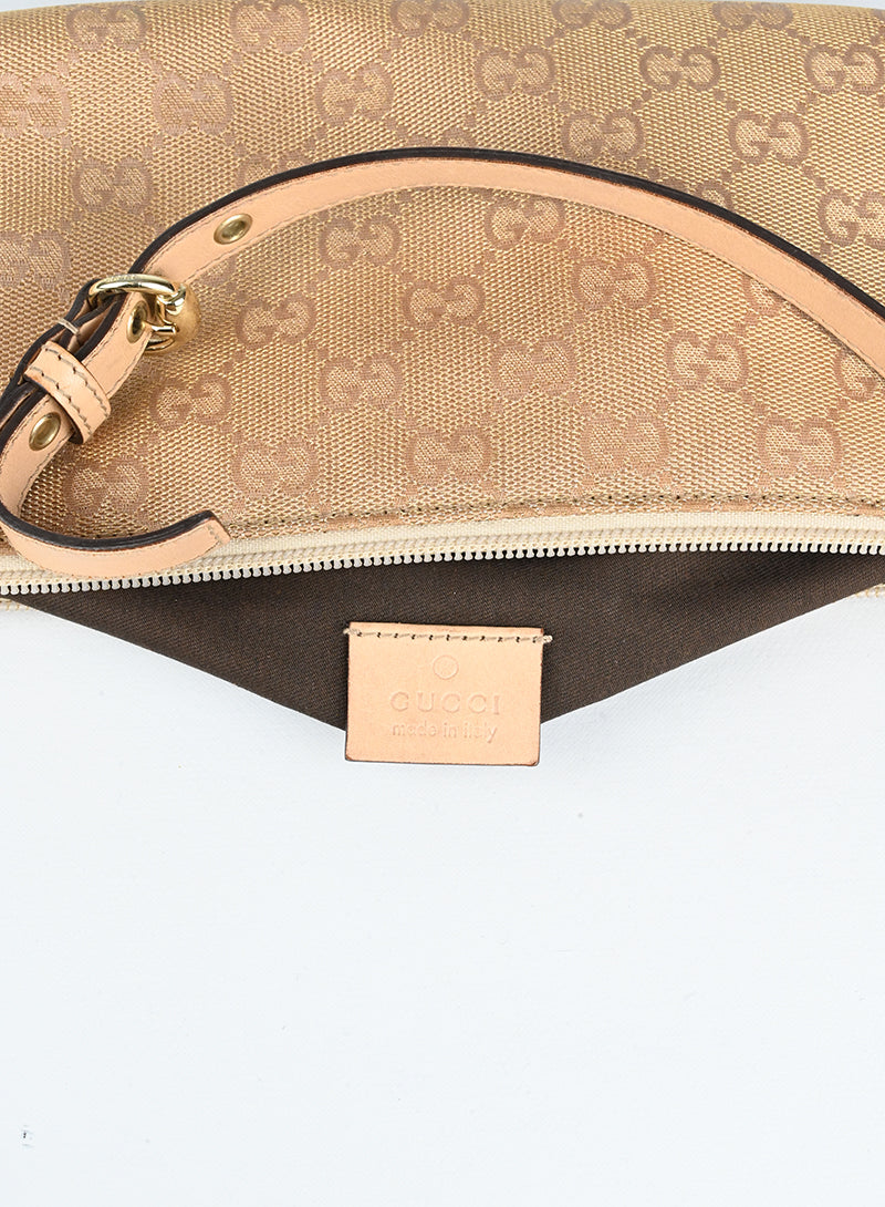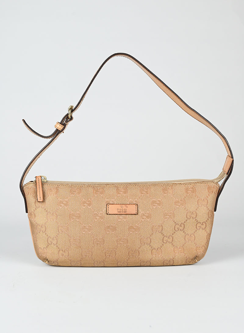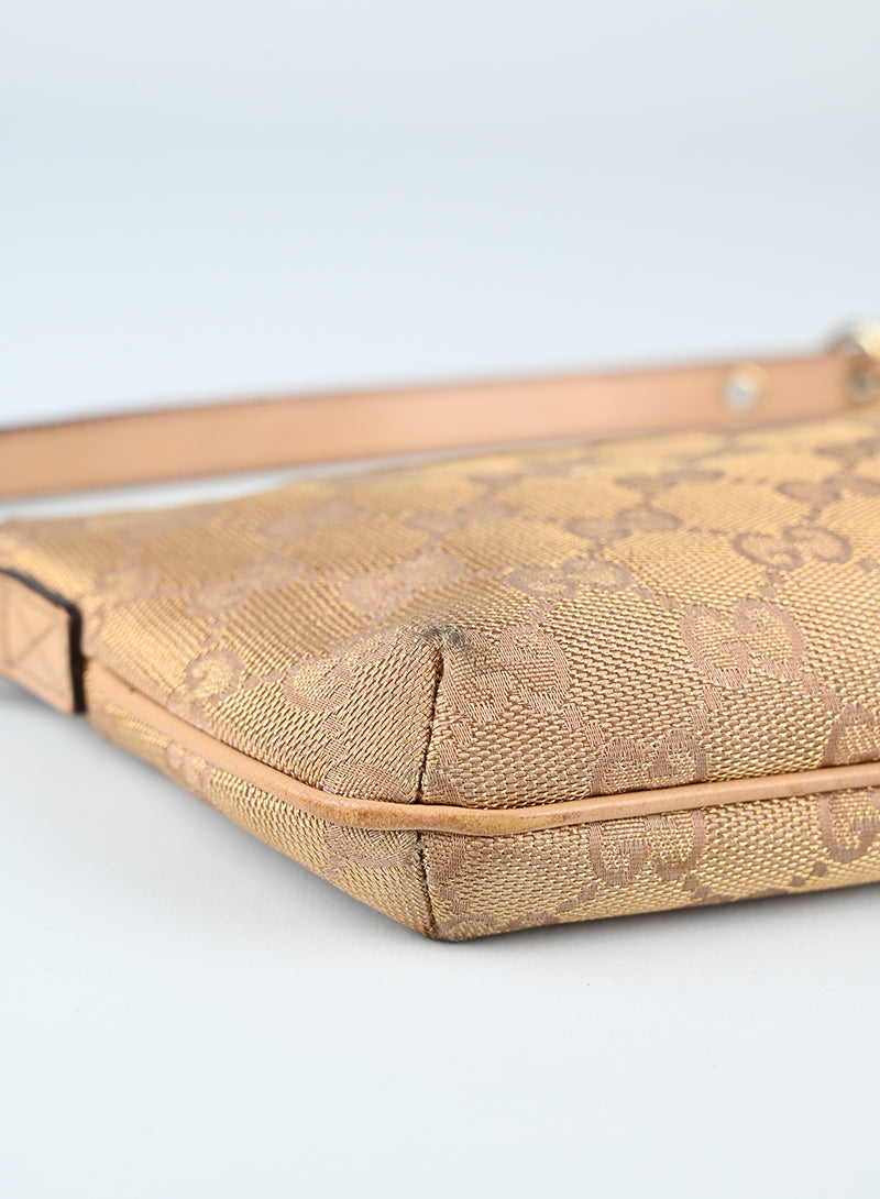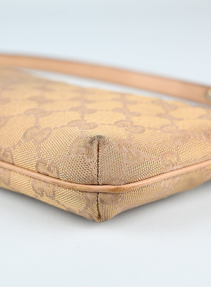 La borsina a spalla Gucci in tessuto color cipria con lurex oro è un accessorio elegante e sofisticato. Presenta un manico in pelle cipria che aggiunge un tocco delicato e raffinato. La chiusura con zip garantisce sicurezza, mentre l'interno è dotato di uno scompartimento con fodera marrone per una comoda organizzazione. L'hardware champagne completa il design, conferendo un tocco di lusso discreto e moderno.