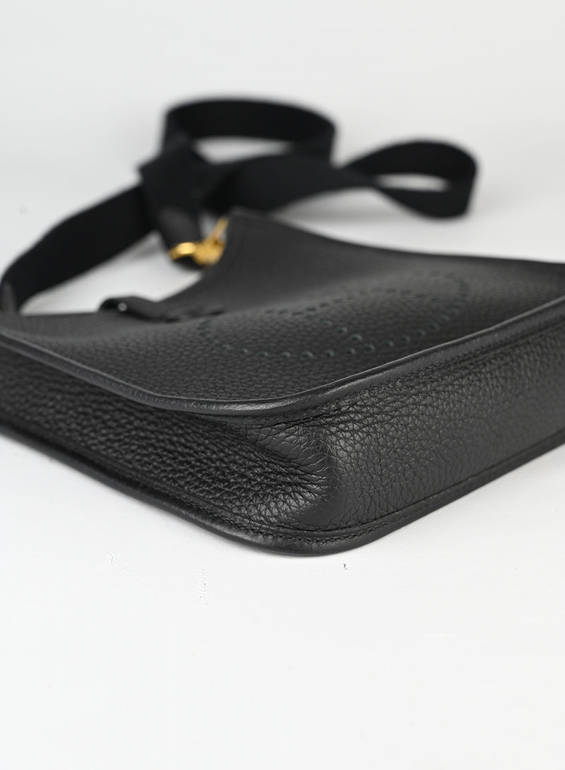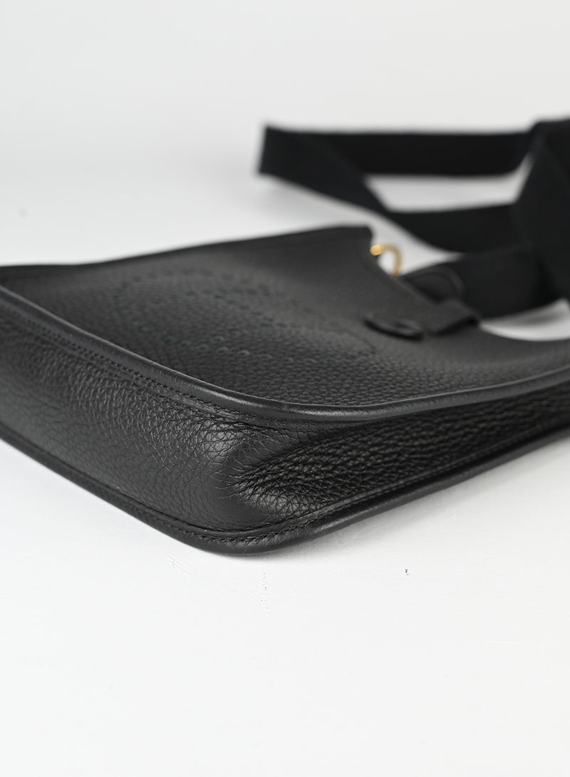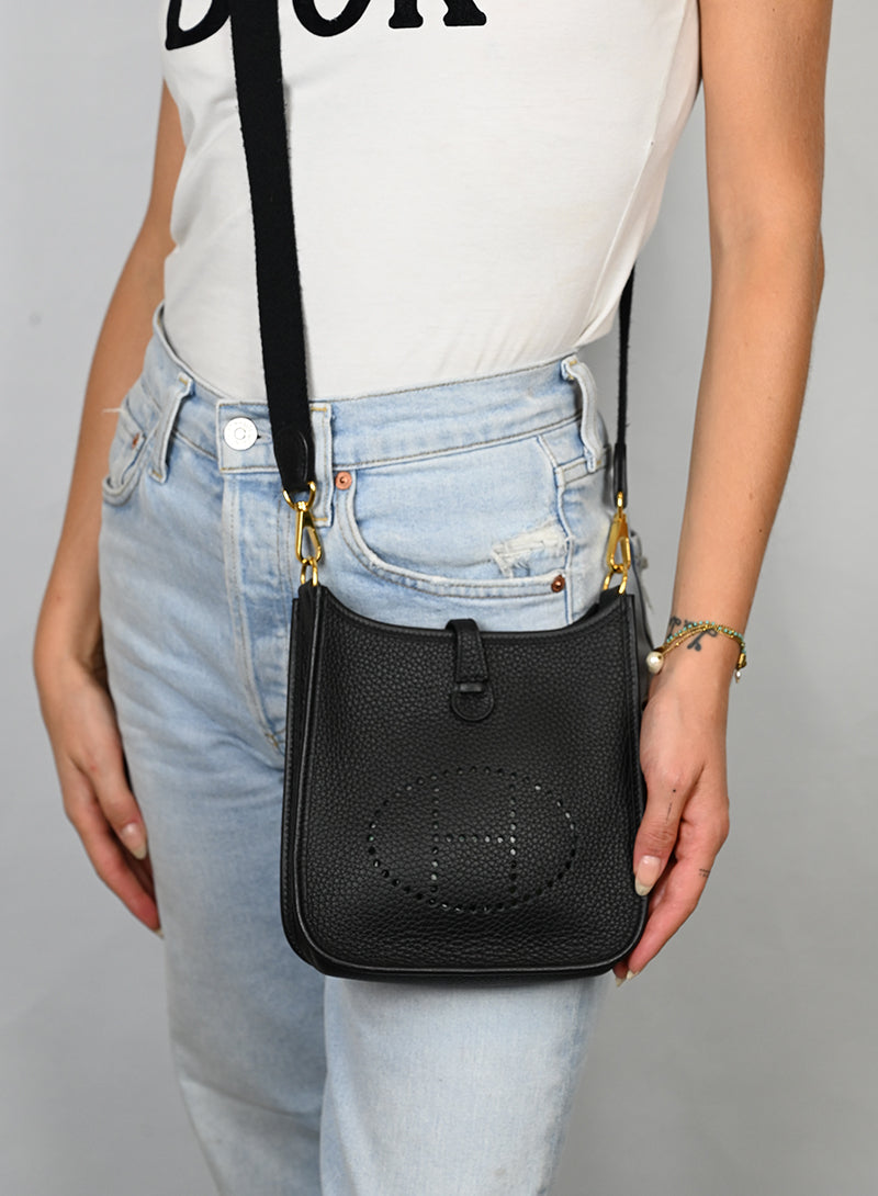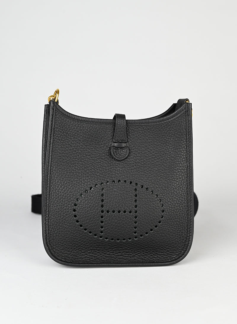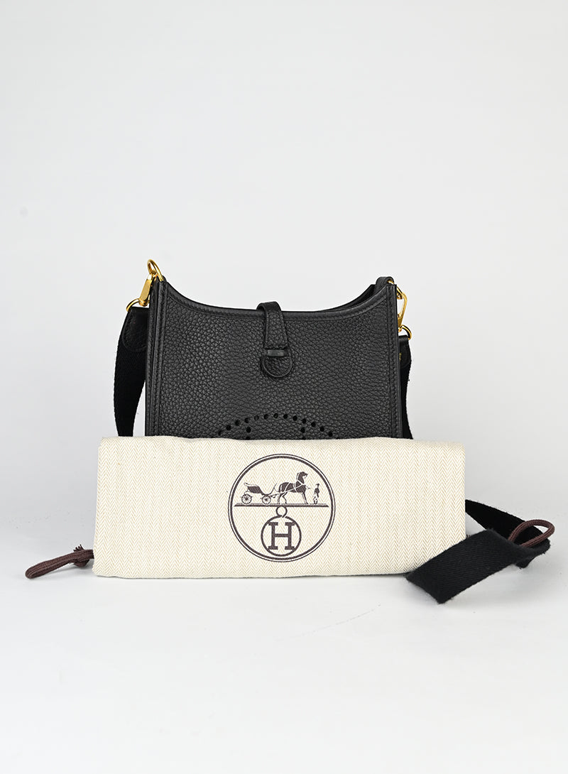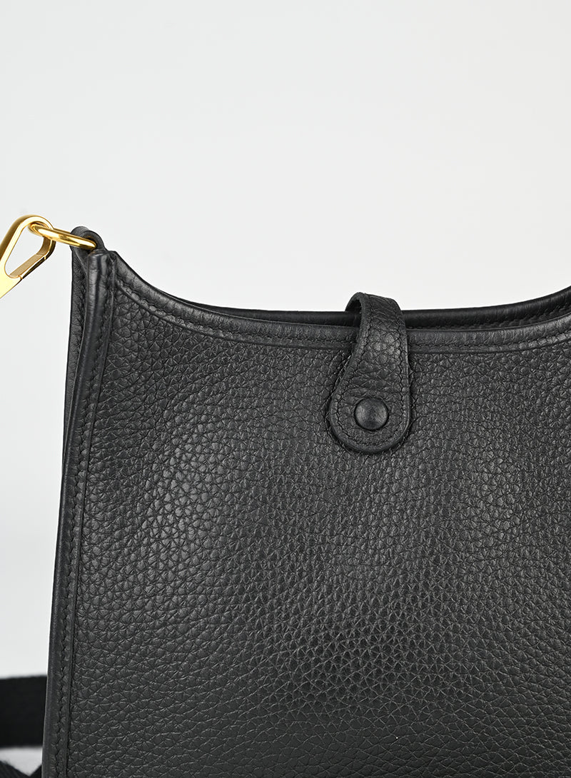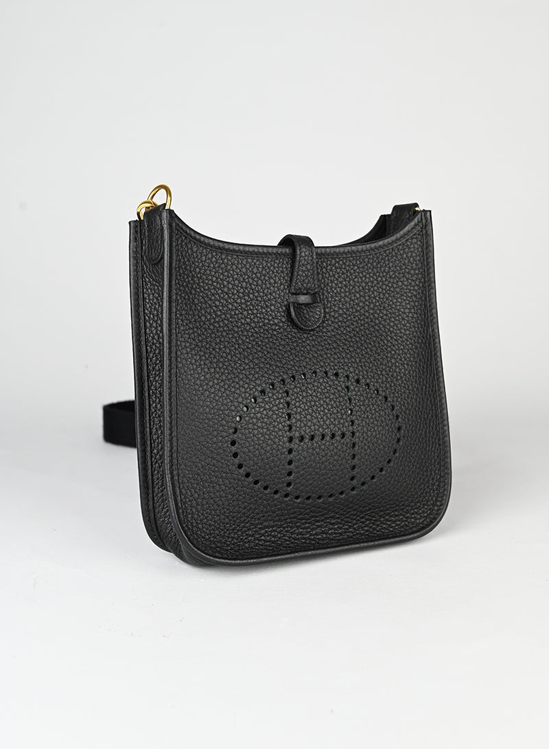 Realizzata in pregiata pelle Clemence nera, la Hermès Evelyne 16 è impreziosita da dettagli in metalleria oro che ne esaltano l’eleganza senza tempo. L’interno in morbido suede garantisce raffinatezza e resistenza, offrendo un comfort esclusivo. Questo iconico modello unisce funzionalità e stile sofisticato, ideale per chi desidera un accessorio di lusso versatile e distintivo.