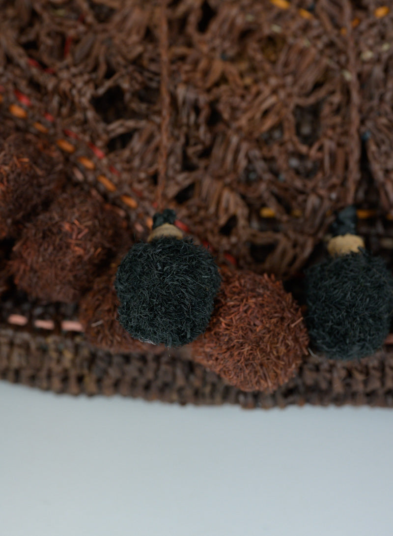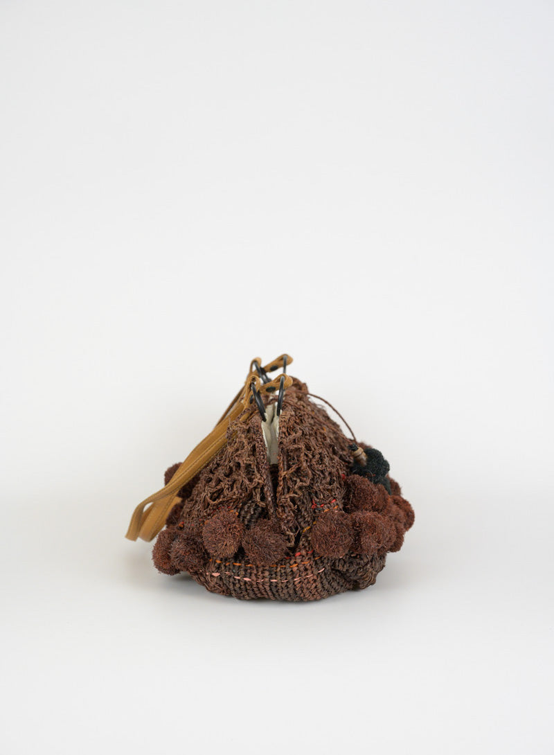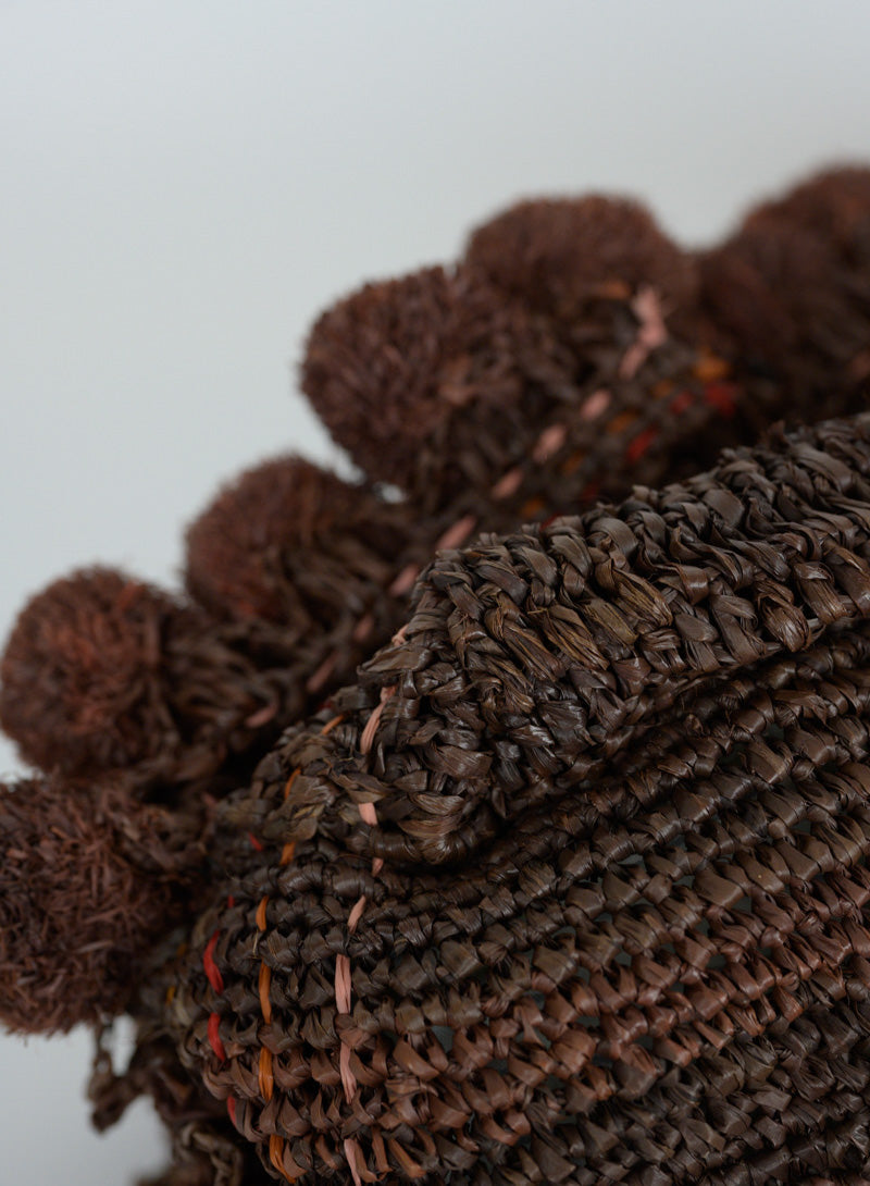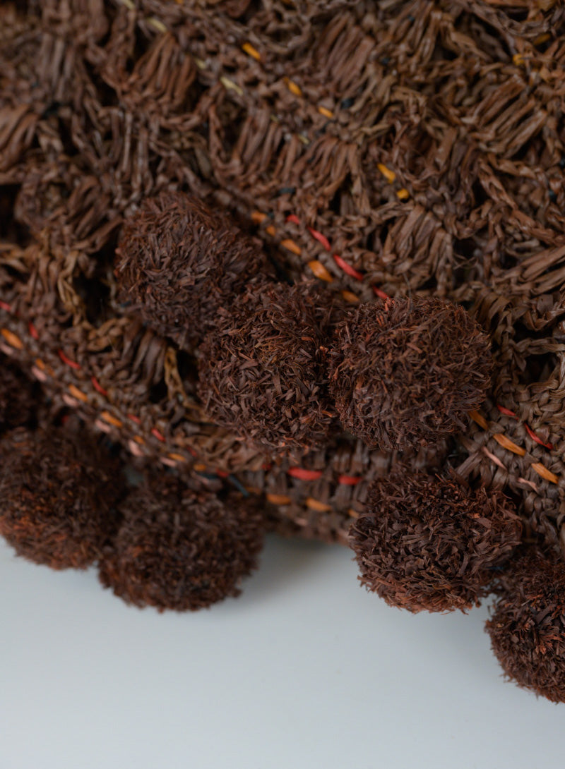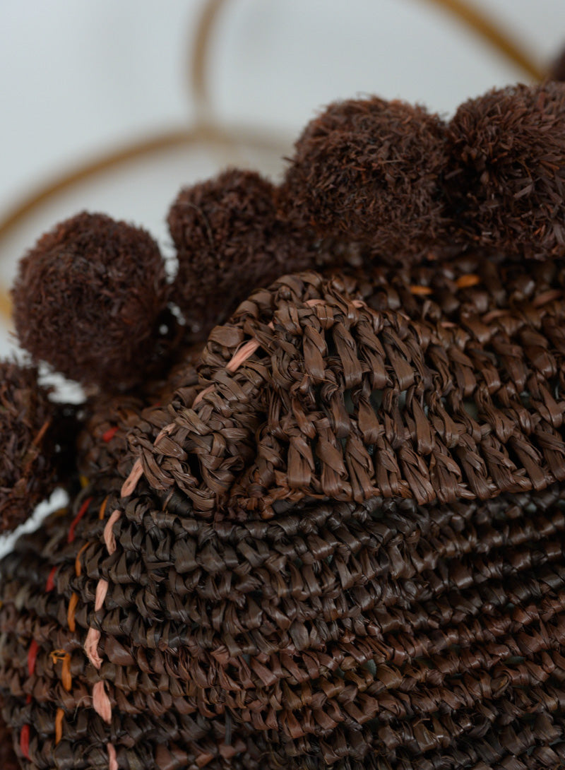 Discover this precious bag by Jamin Puech. Made of hand-woven brown straw, detailed with two beige leather handles and lace closure with brown pom poms. Its interior, finished with a white and gray striped lining, is divided into a comfortable compartment to best contain all your objects. An elegant bag to show off in style.