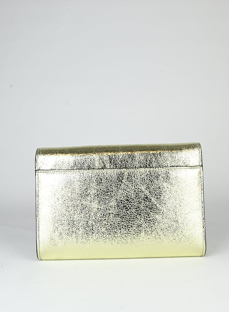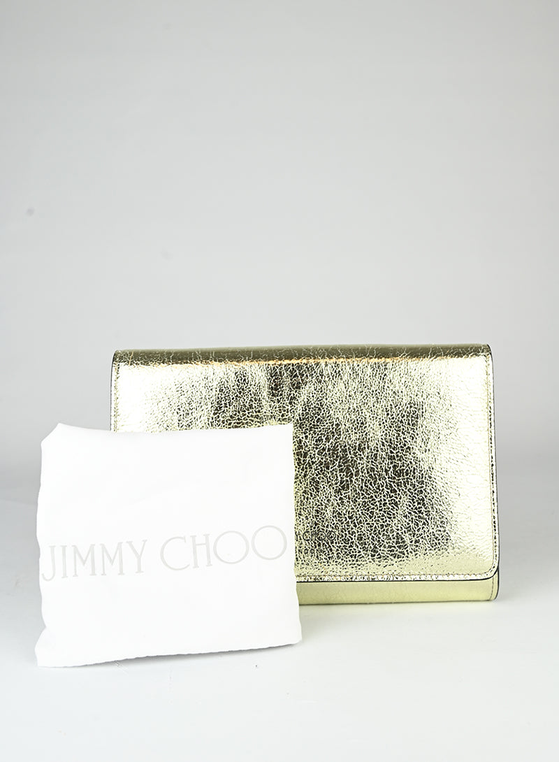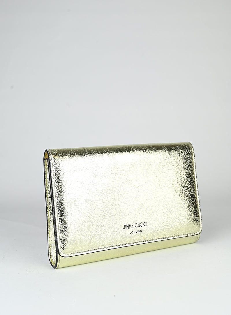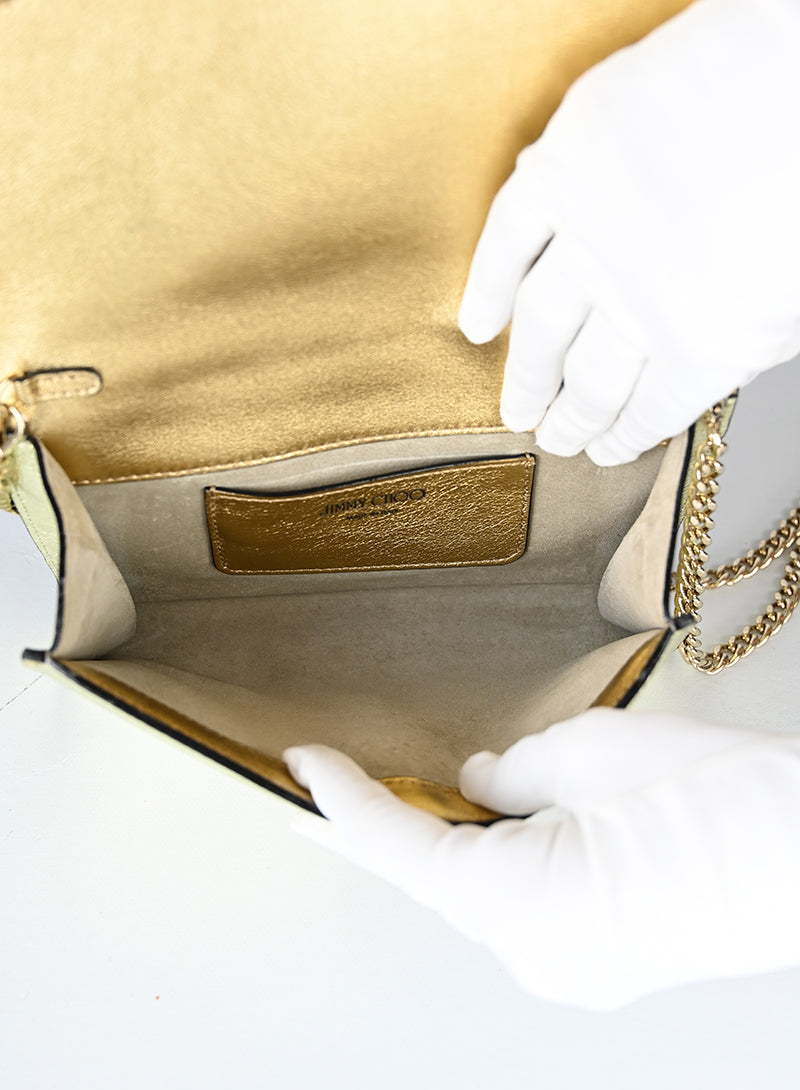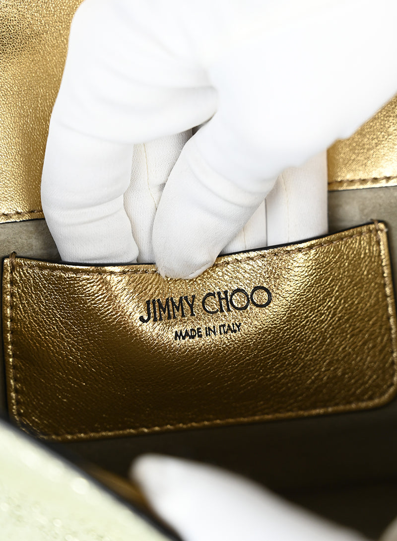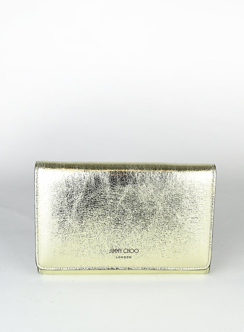 Elegante borsetta Jimmy Choo in pelle oro, perfetta per chi cerca un accessorio raffinato. La tracolla removibile consente versatilità nell’uso, mentre l’interno in morbido suede con una taschina garantisce organizzazione e stile. Un mix di lusso e funzionalità che completa ogni outfit con classe.