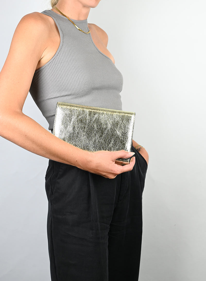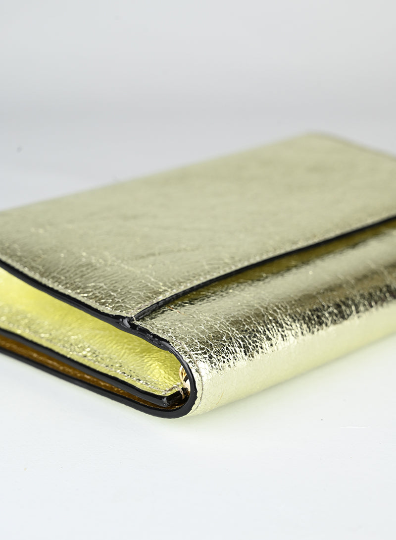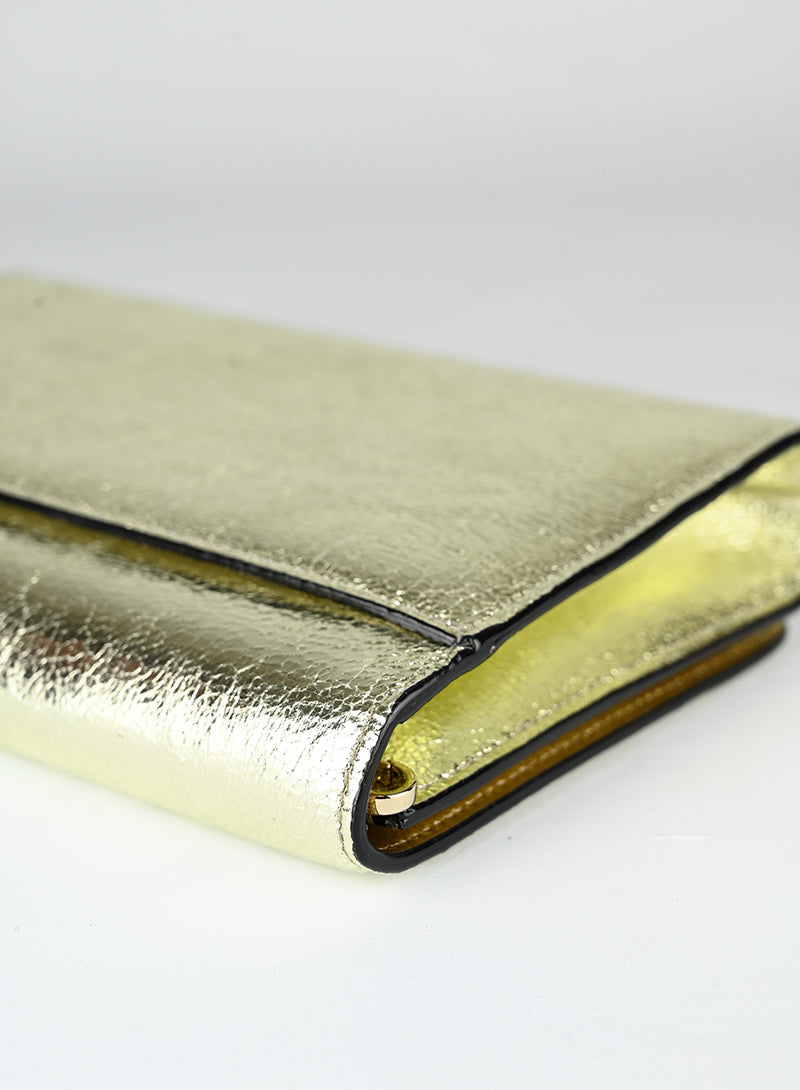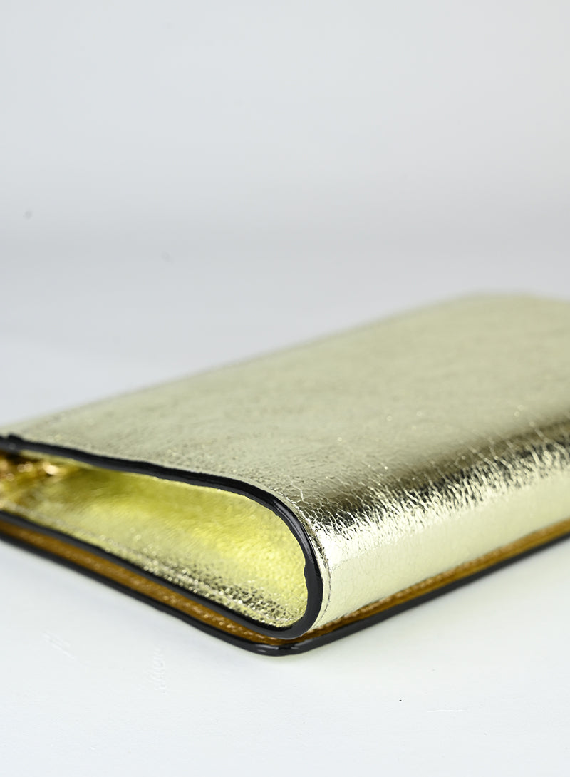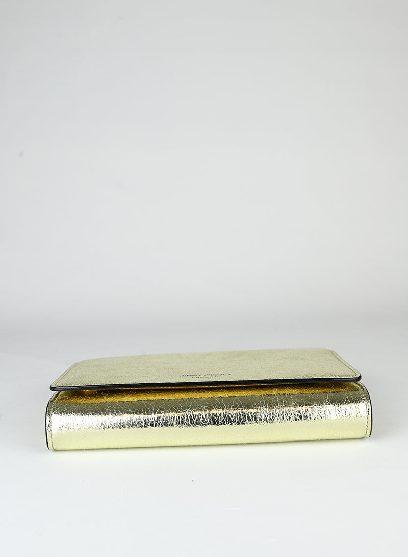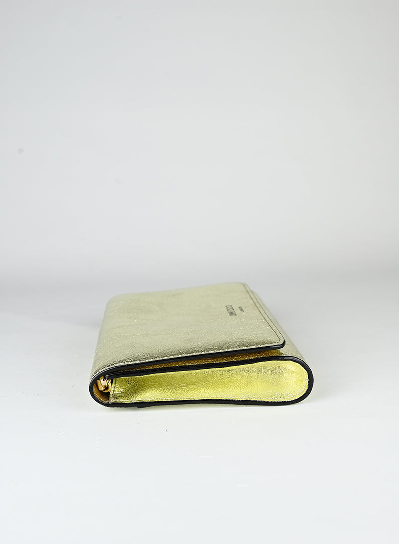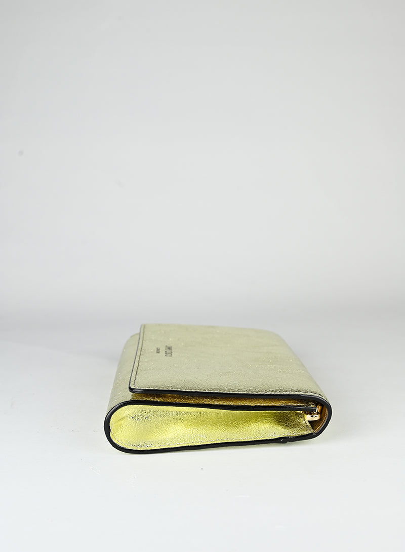 Elegante borsetta Jimmy Choo in pelle oro, perfetta per chi cerca un accessorio raffinato. La tracolla removibile consente versatilità nell’uso, mentre l’interno in morbido suede con una taschina garantisce organizzazione e stile. Un mix di lusso e funzionalità che completa ogni outfit con classe.