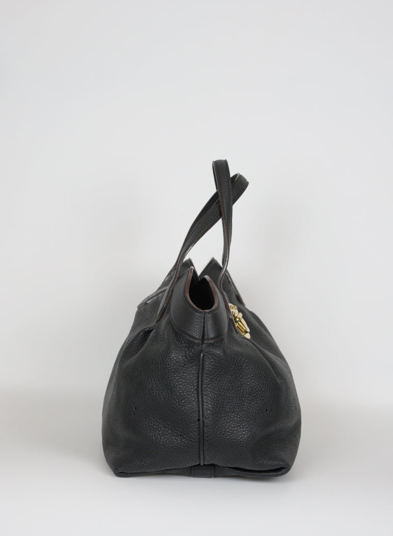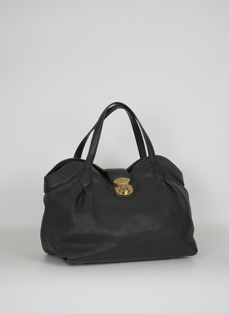 The luxurious Louis Vuitton Mahina Cirrus PM bag in black leather offers an elegant and refined look. Its sophisticated design stands out thanks to the rigid upper profiles and the two leather handles. The snap closure with gold plate and the fabric interior with three pockets, one of which with a zip closure, make this bag both practical and exclusive.