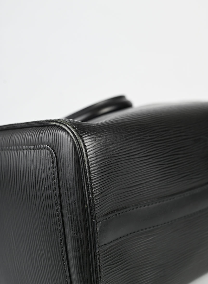 Borsa Speedy Louis Vuitton in pregiata pelle Epi nera, un classico intramontabile del lusso. Caratterizzata da due manici in pelle, tasca laterale funzionale e sistema di chiusura con lucchetto originale e relative chiavi. L'interno presenta un ampio scomparto principale con due taschine organizzative. Perfetta per chi apprezza l'eleganza senza tempo e la qualità artigianale francese. Pezzo vintage di grande valore e versatilità.