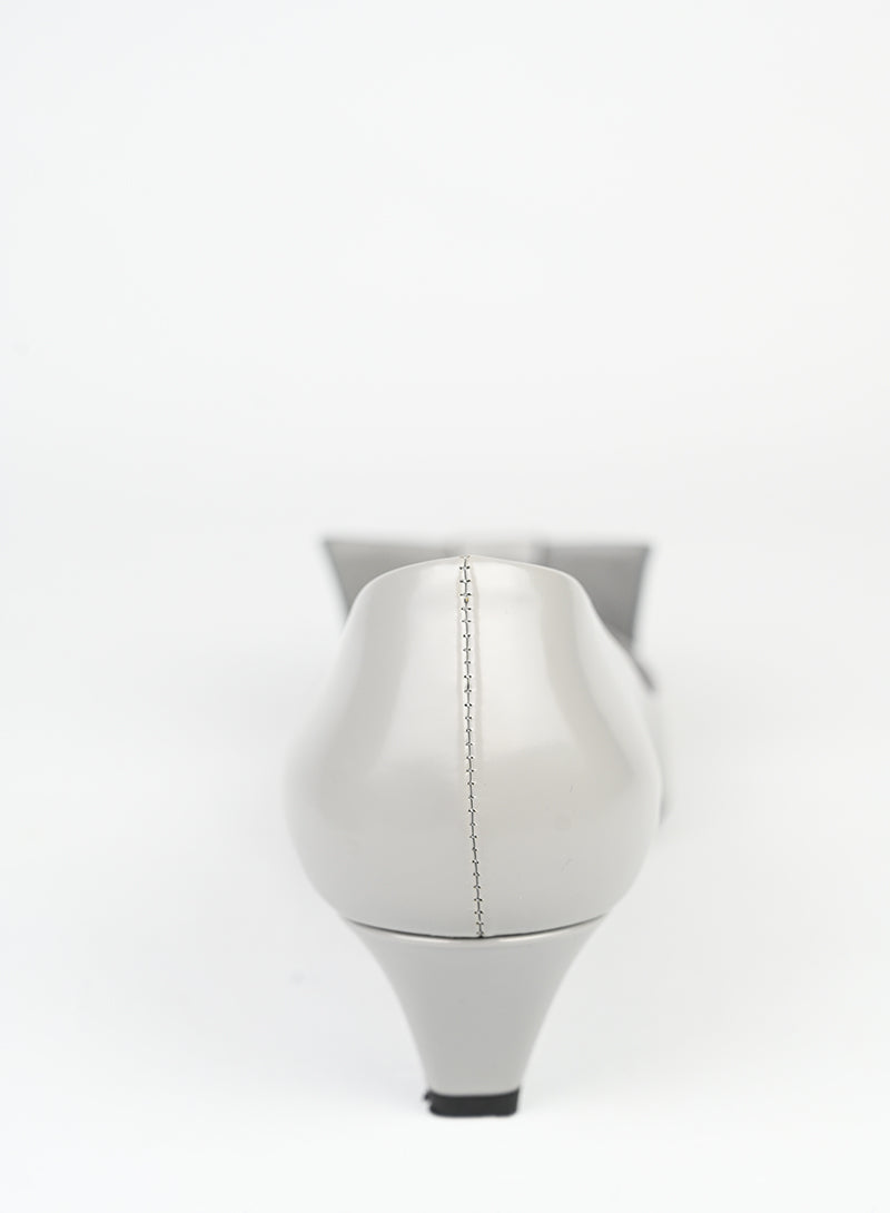 Elegante décolleté Prada in pelle grigio chiaro, caratterizzato da una silhouette raffinata con punta e tacco basso. I dettagli scultorei sulla parte superiore conferiscono un tocco di sofisticatezza senza compromessi. Perfetto per chi ricerca un'eleganza discreta e versatile, questo modello si distingue per la sua lavorazione artigianale e il design minimalista. Una scelta ideale per completare look sia casual che più formali, mantenendo sempre un'aria di lusso consapevole.