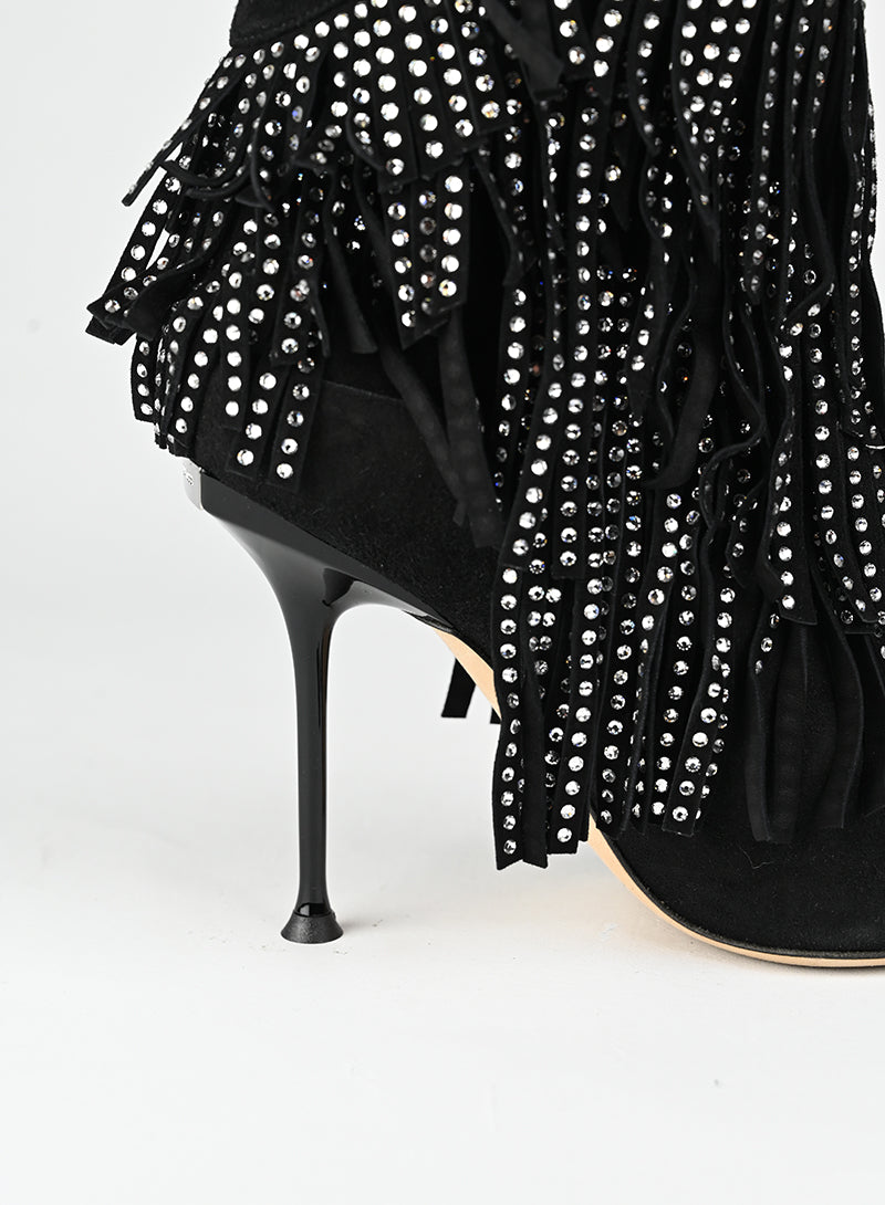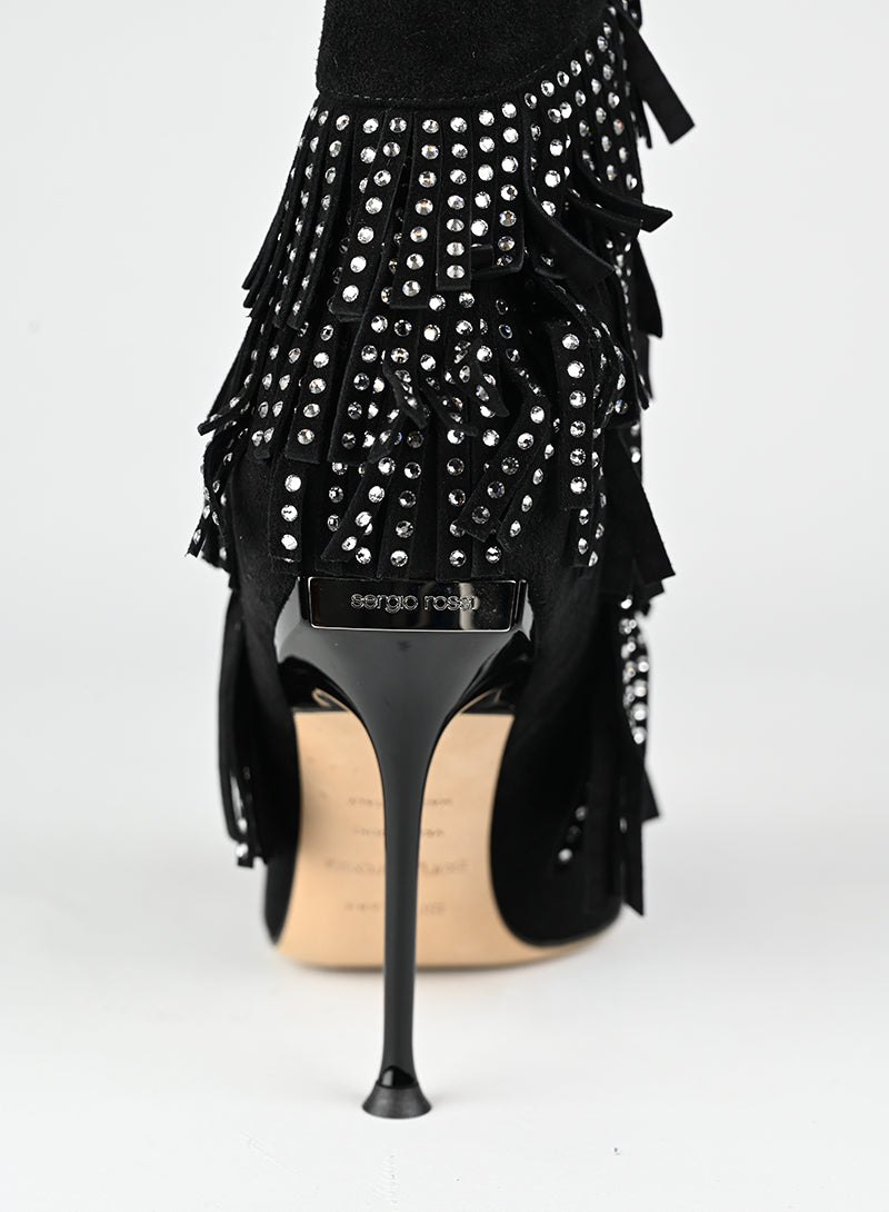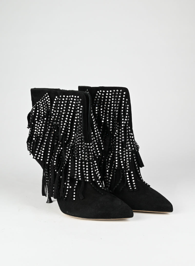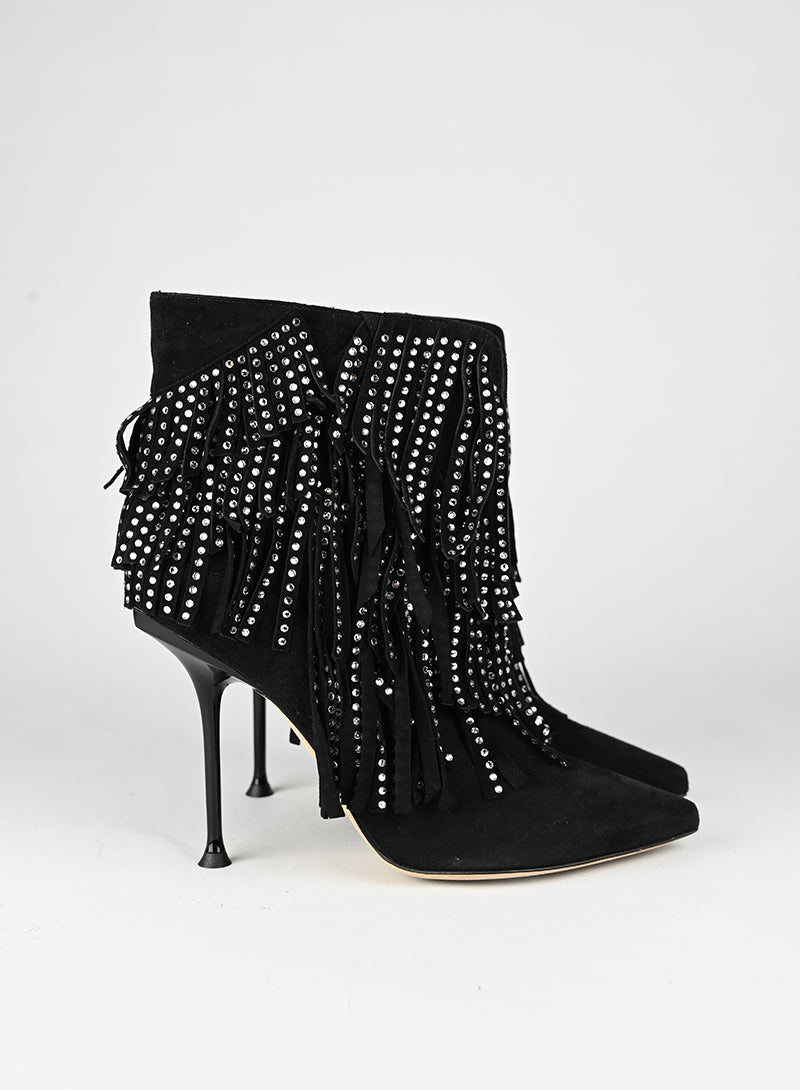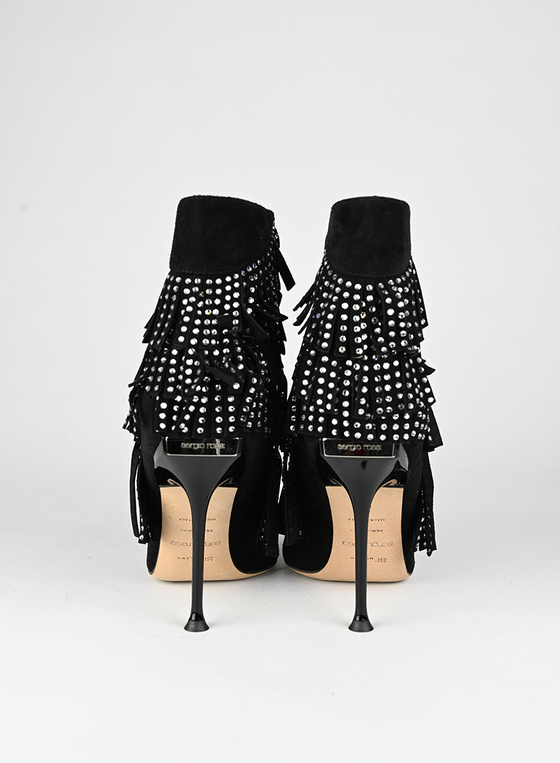 Sergio Rossi Stivaletti in suede neri con frange - N. 37