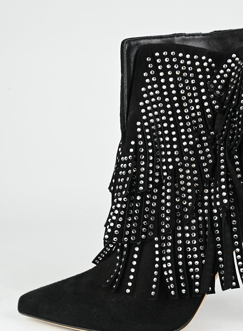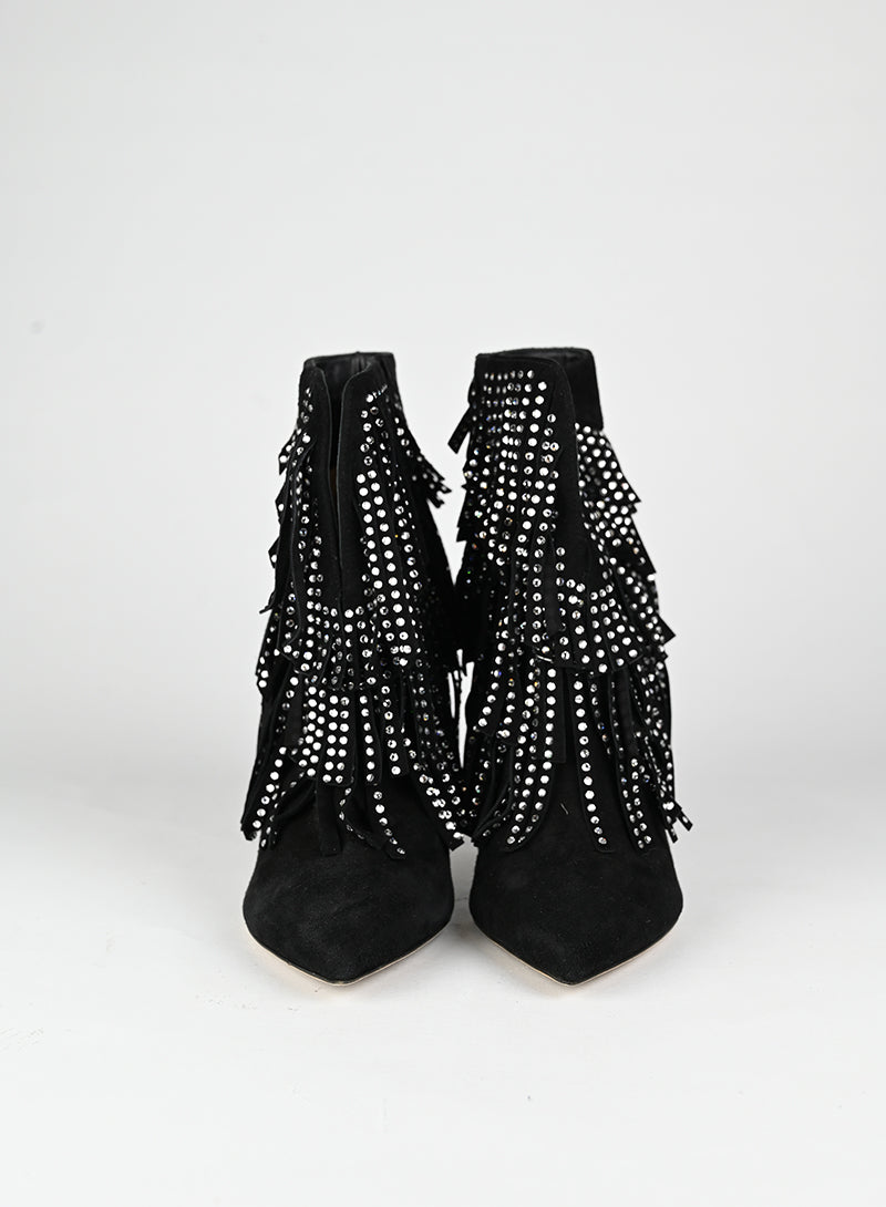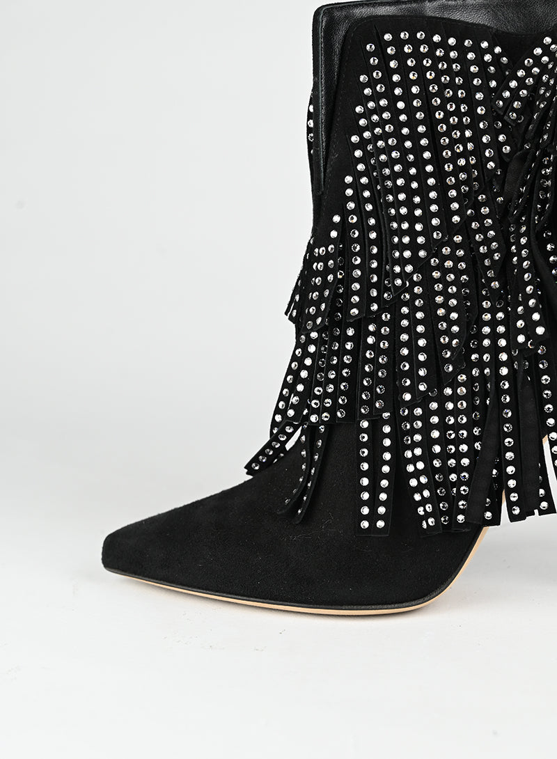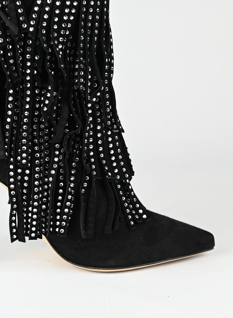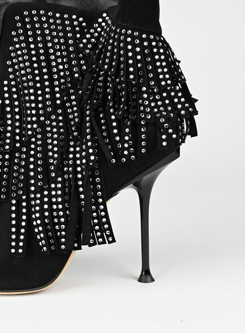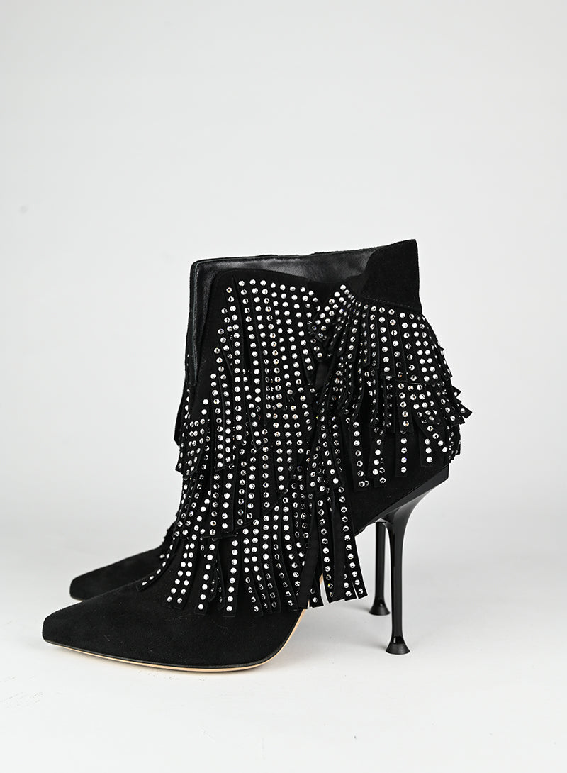 Sergio Rossi Stivaletti in suede neri con frange - N. 37