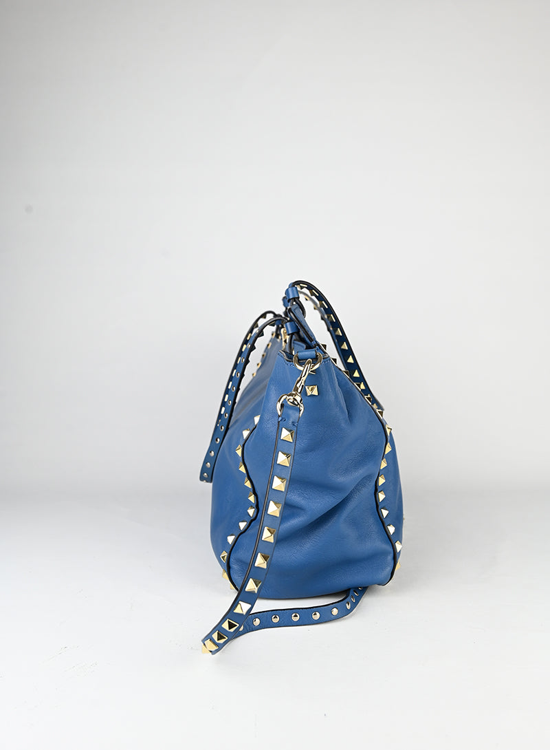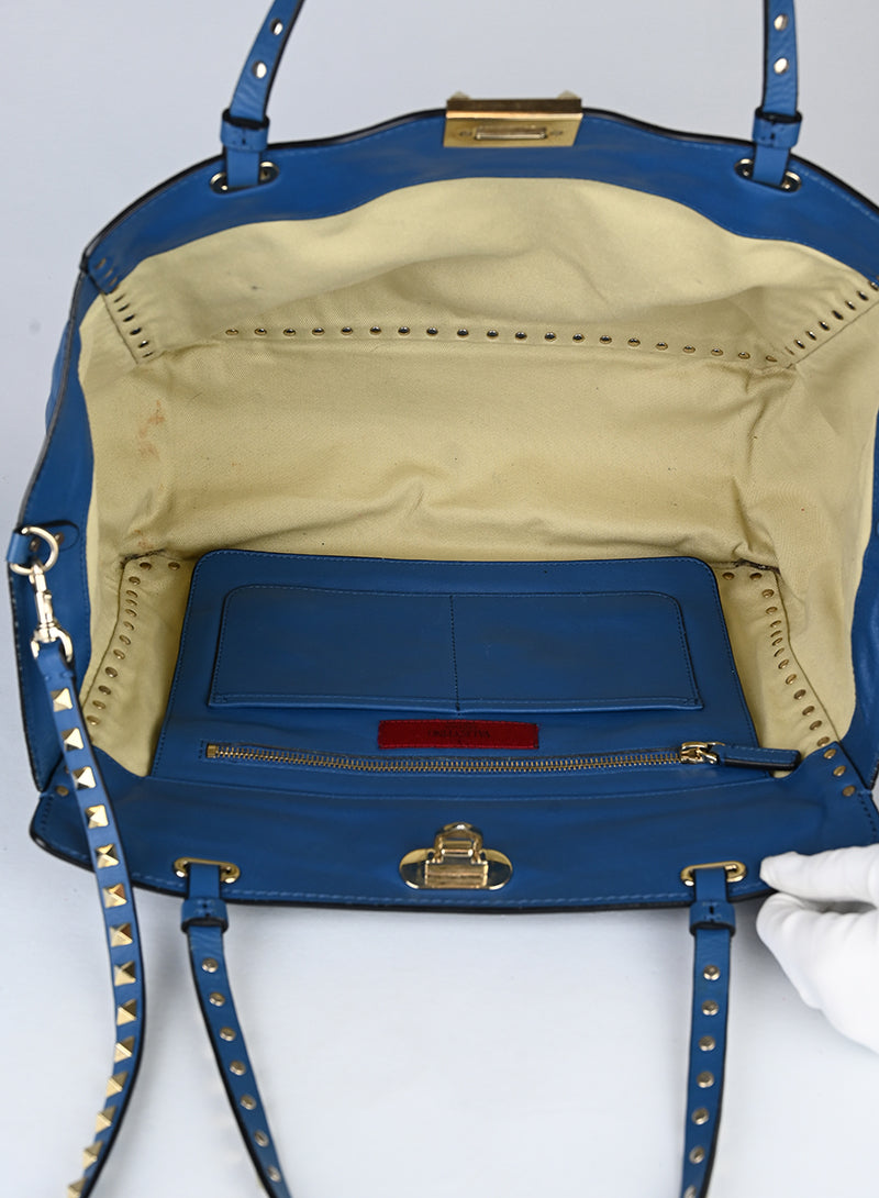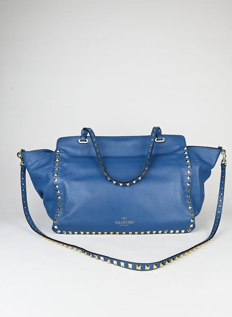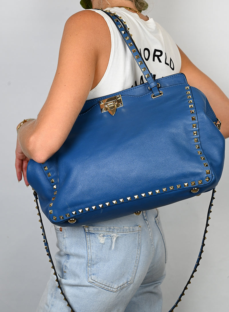 Valentino Borsa Rockstud in pelle blu
