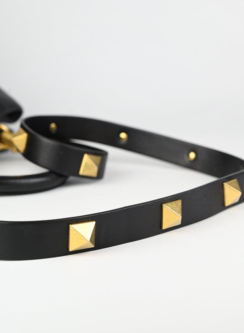 Elegante borsa Valentino in pelle nera, impreziosita dai celebri Roman Studs oro di grandi dimensioni che caratterizzano il design iconico della maison. Dotata di un pratico manico e tracolla removibile per versatilità di utilizzo. Gli ampi scompartimenti interni, arricchiti da taschine funzionali, includono una con chiusura magnetica e un'altra con sistema ad incastro per mantenere i vostri effetti personali sempre al sicuro. Un accessorio di lusso che unisce stile raffinato e praticità.