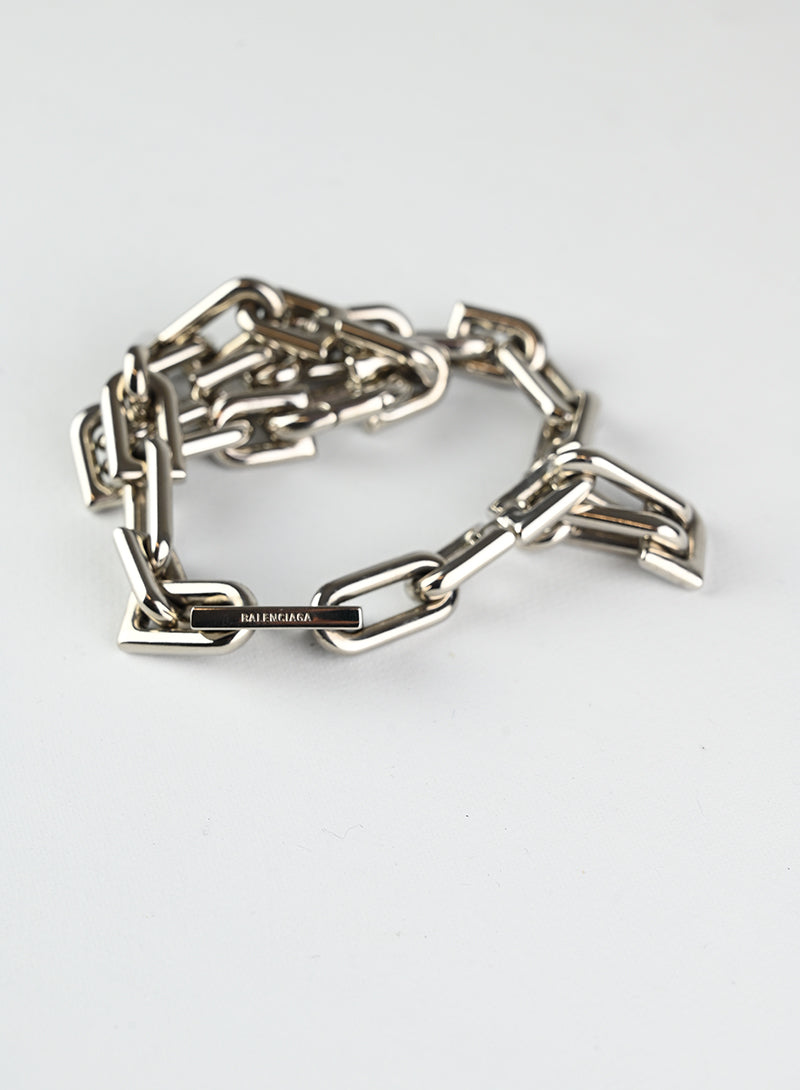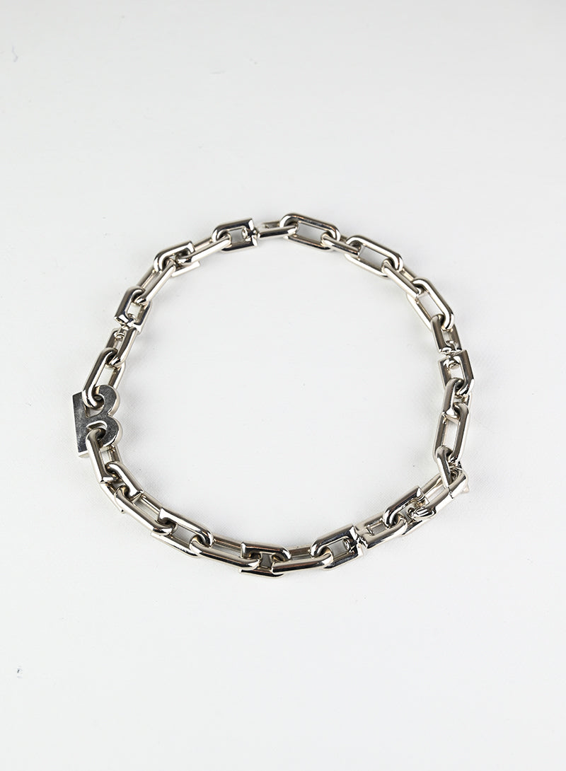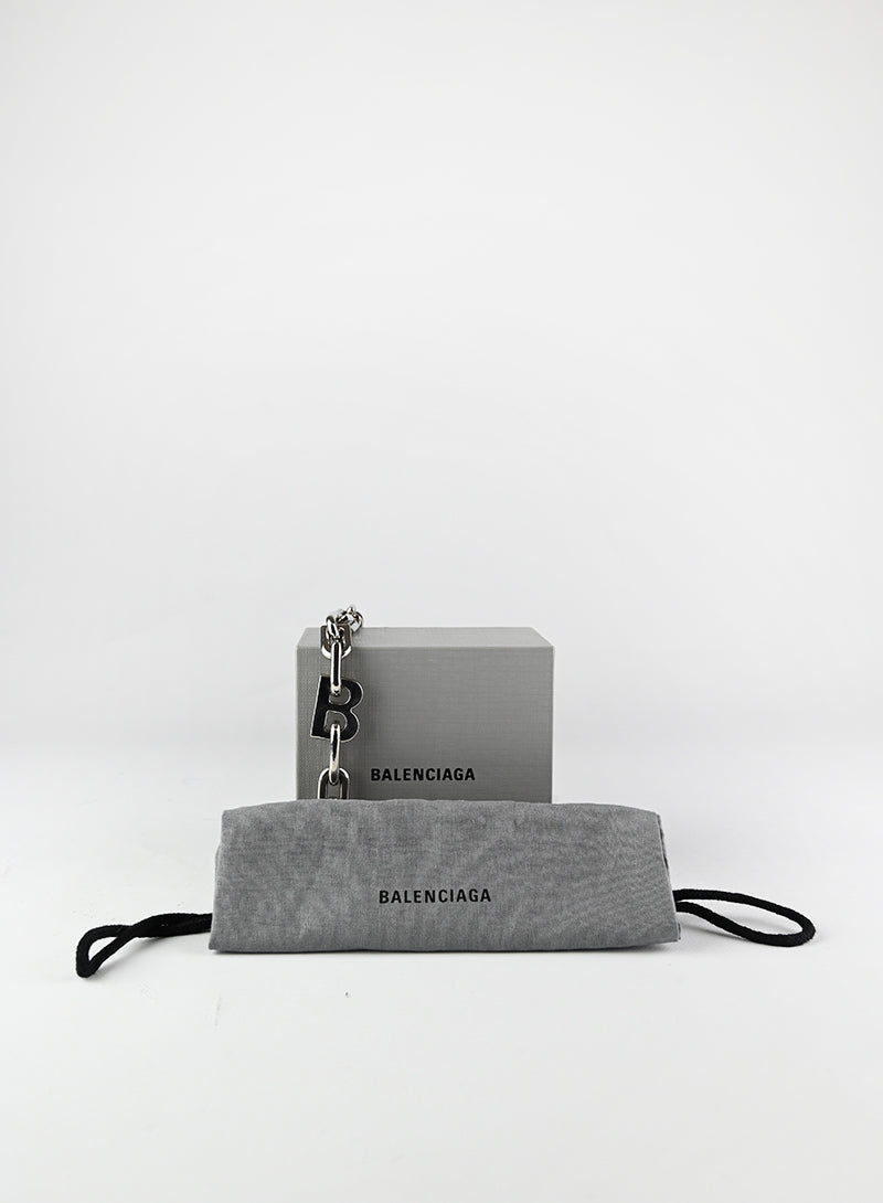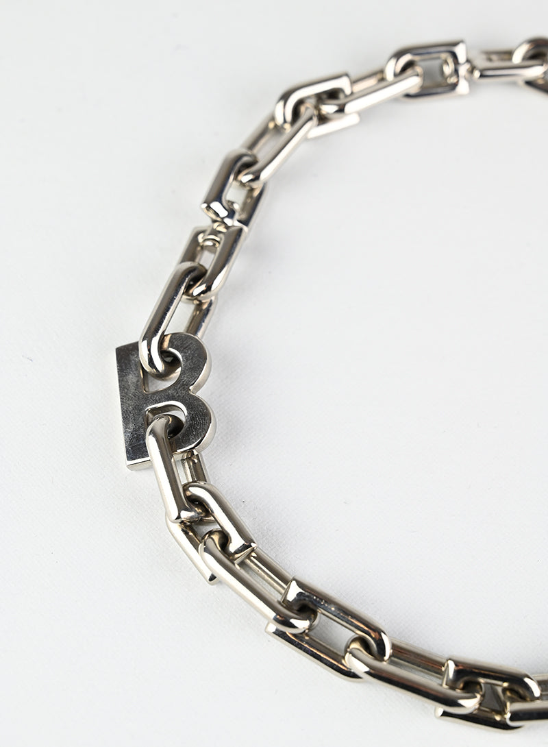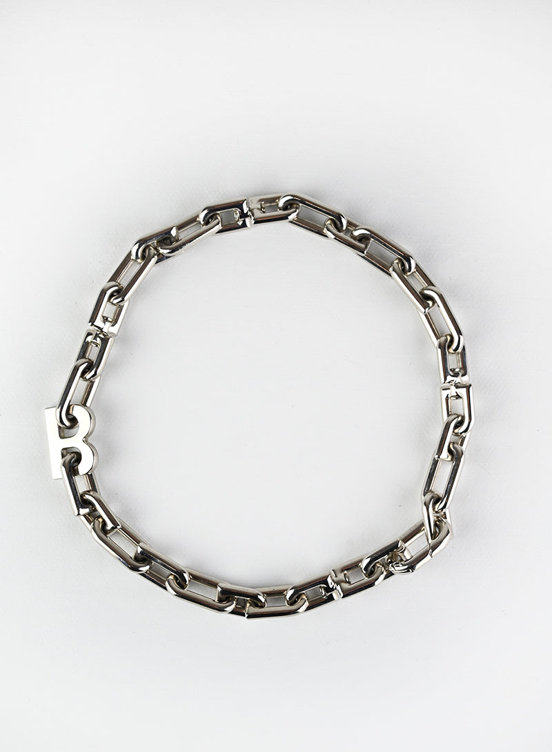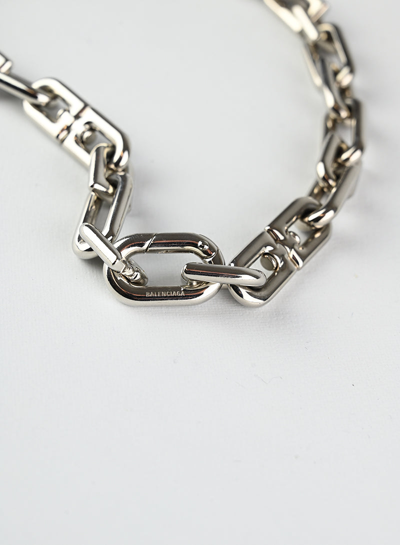 Esalta il tuo look con la Balenciaga Collana con catena argentata, caratterizzata dal logo maxi B tra gli anelli. Aggiungi un tocco di lusso e sofisticazione al tuo outfit grazie a questo elegante accessorio.