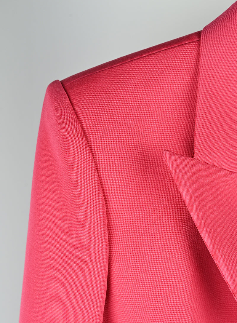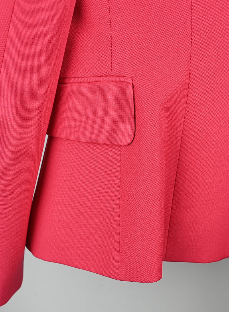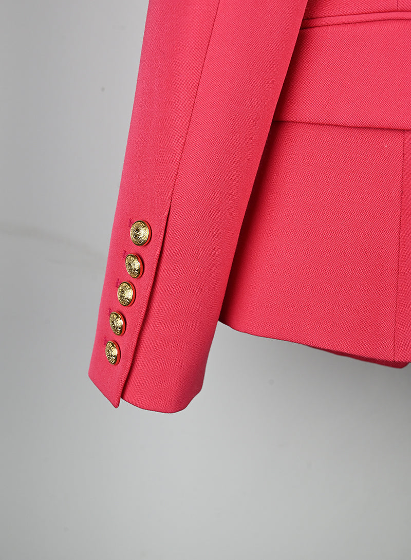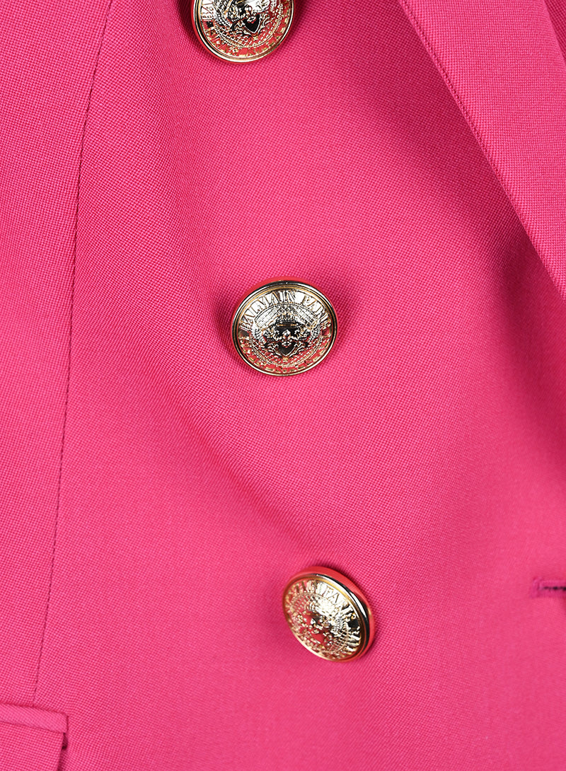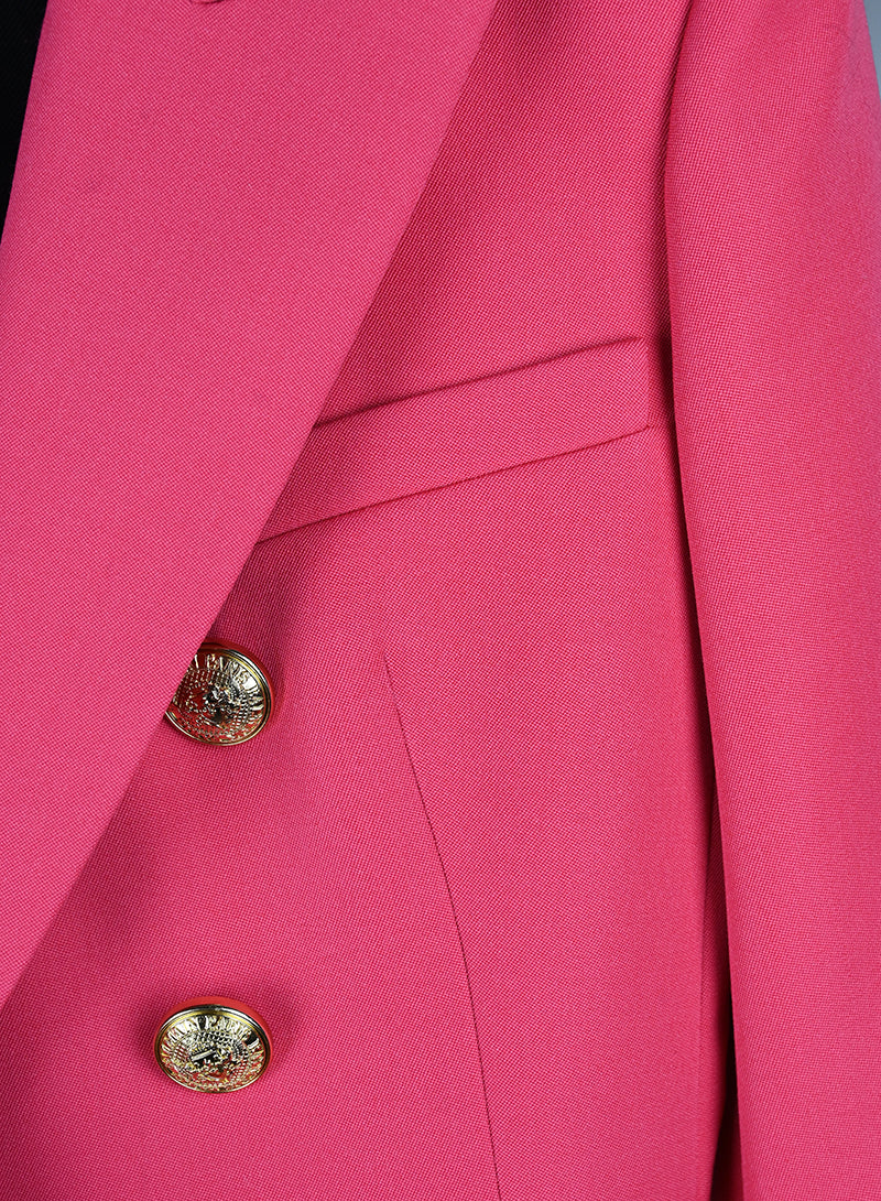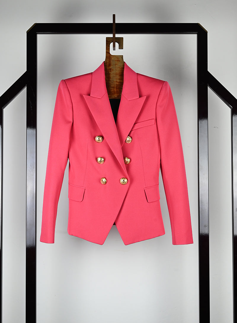 Esaltate il vostro stile con il Blazer Balmain in color fragola. Con il suo doppiopetto avvitato abbinato ai sei bottoni in oro con stemma e i dettagli come il rever e le tasche, vi sentirete chic e sofisticate. La fodera e le spalline garantiscono una vestibilità impeccabile.