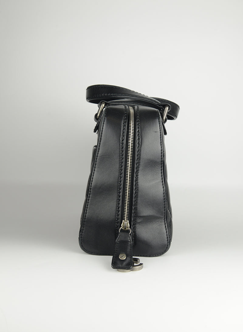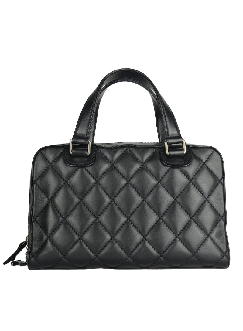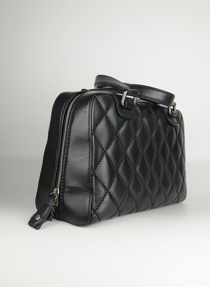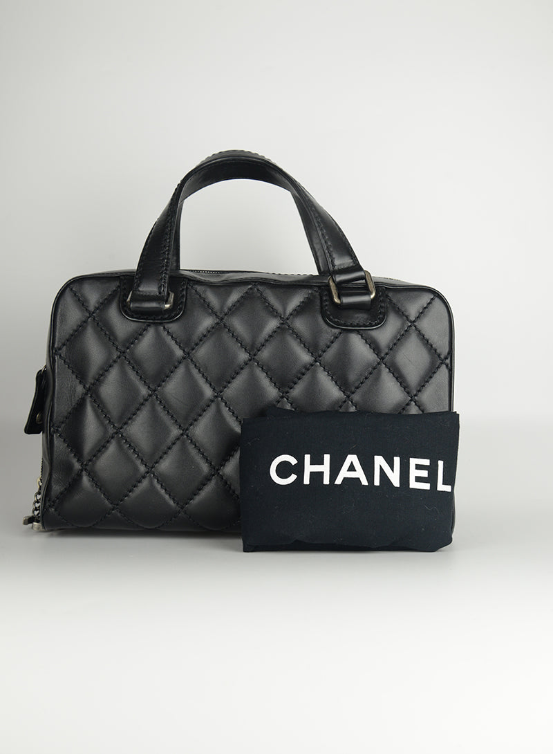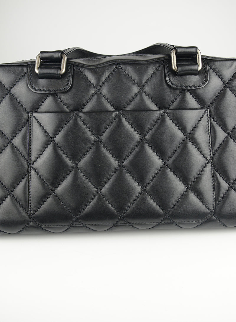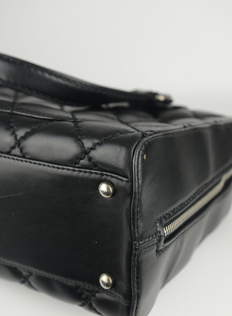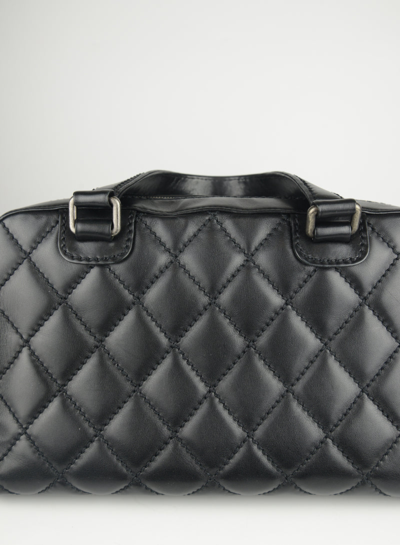 Esclusivo e di lusso, il Bauletto Chanel in pelle nera quilted è un simbolo di eleganza e raffinatezza. Con una silhouette rigida, 2 manici e dettagli in hardware argento brunito, questo bauletto del 2006-2007 è un must-have per ogni collezionista. L'interno foderato in tessuto comprende 1 scompartimento e 3 tasche per un'organizzazione impeccabile.