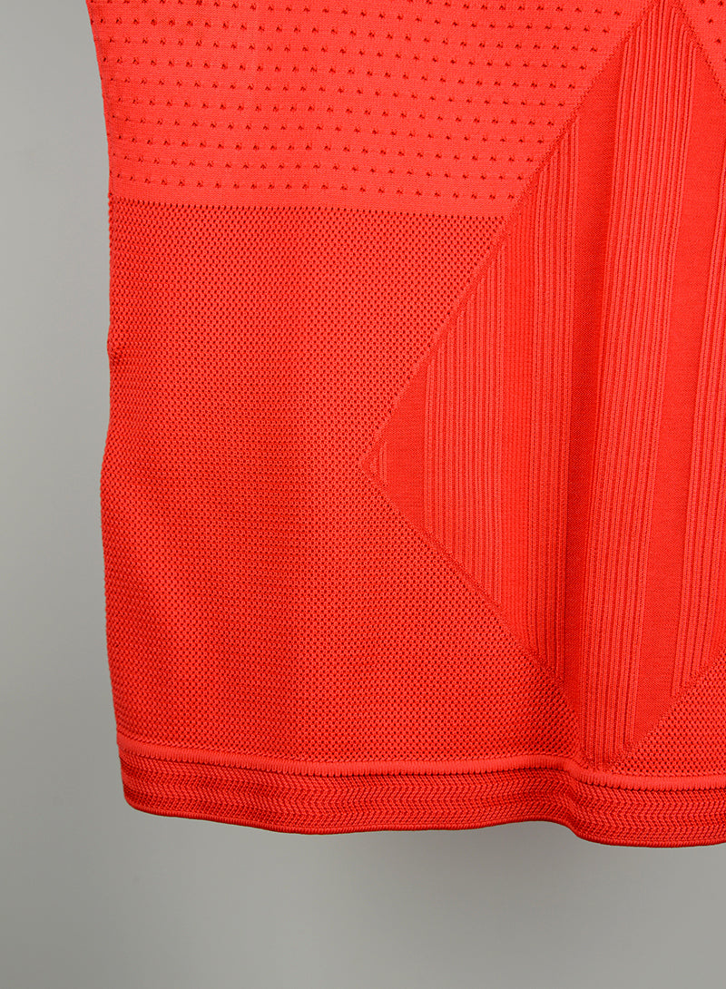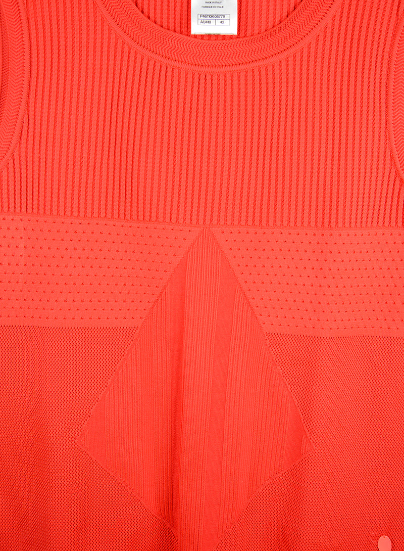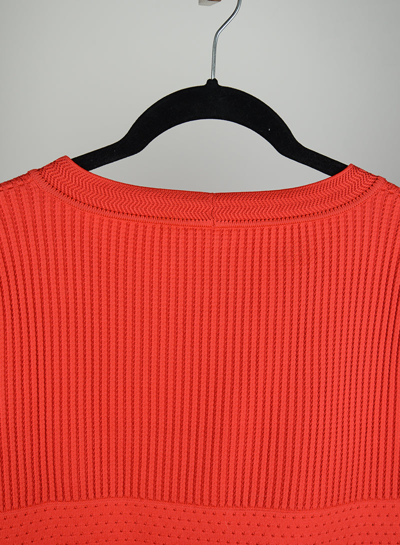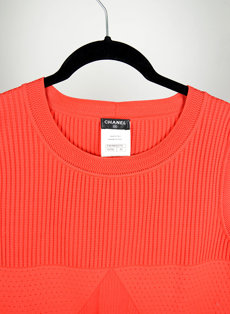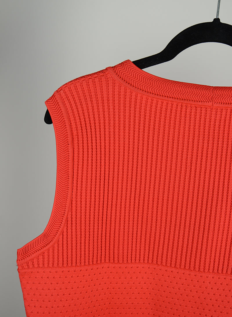 Esalta il tuo guardaroba con il Gilet lavorato Chanel in rosso. Con un'intrigante lavorazione tridimensionale sul davanti e sul retro, questo gilet aggiunge un tocco di eleganza e sofisticazione al tuo stile. Perfetto per l'abbigliamento formale o informale, questo capo unico è sicuramente un must-have per chi ama il lusso.