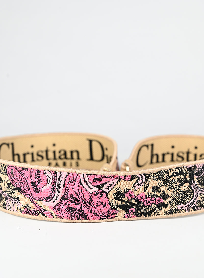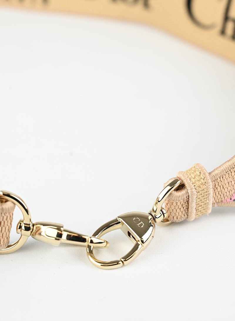 Elegante tracolla Dior in canvas beige con delicati ricami floreali in rosa e nero che catturano l'essenza del design parigino. L'interno presenta la scritta "Dior" ricamata in nero, garantendo autenticità e raffinatezza. Gli hardware dorati completano il look lussuoso, conferendo un tocco di eleganza senza tempo. Perfetta per chi ricerca uno stile sofisticato e versatile, questa borsa a spalla singola si adatta a qualsiasi occasione con grazia e distinzione.