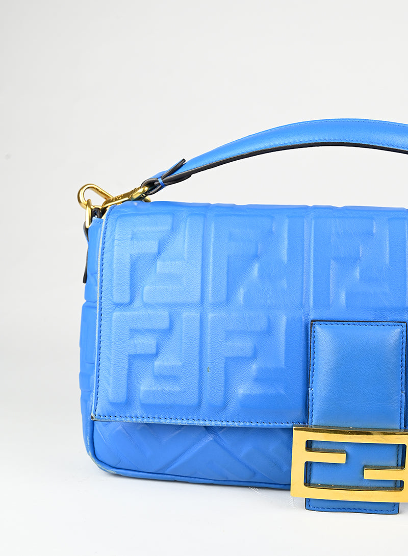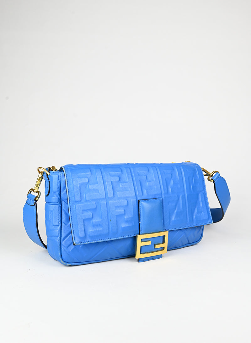 Fendi Borsa Maxi Baguette in pelle azzurra