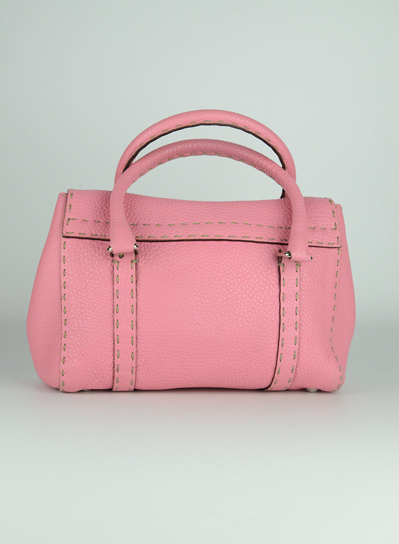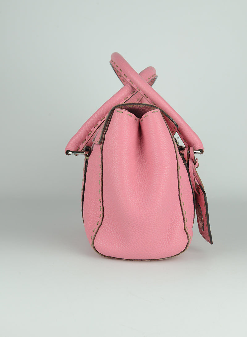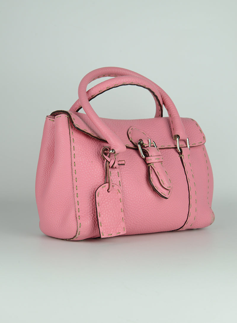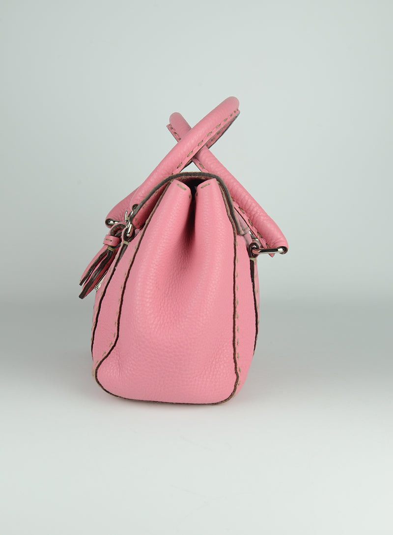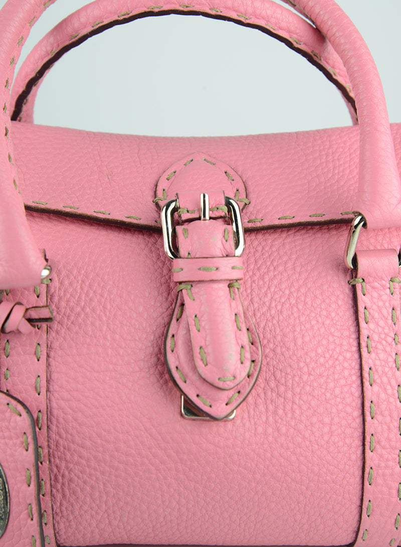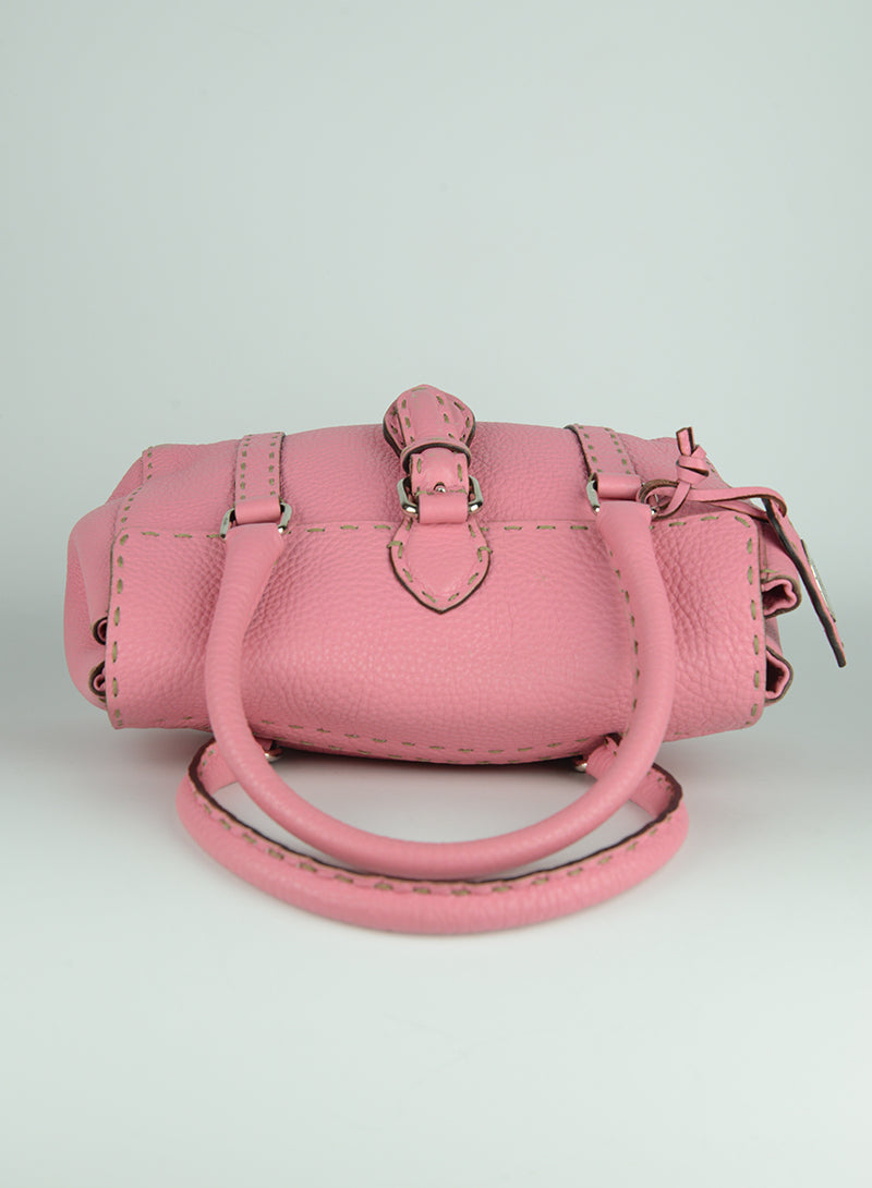 Elegante borsina Fendi Selleria in pelle rosa. Dotata di due manici per un look sofisticato, hardware argentato e impunture di alta qualità. Ampio scompartimento interno con tasca con zip per una perfetta organizzazione. Chiusura magnetica per un tocco di raffinatezza.