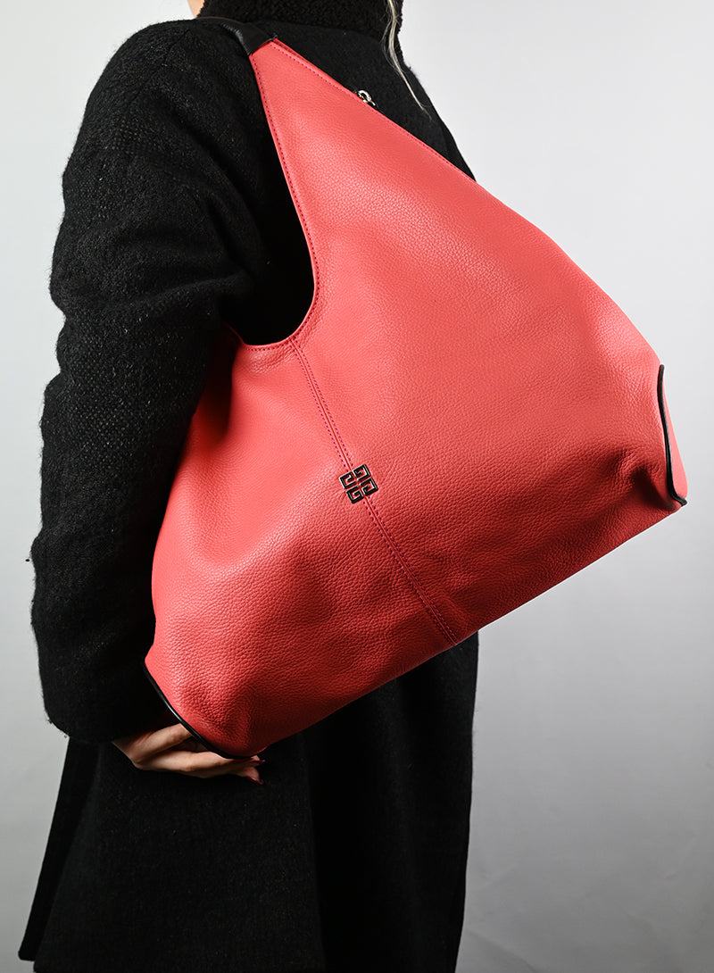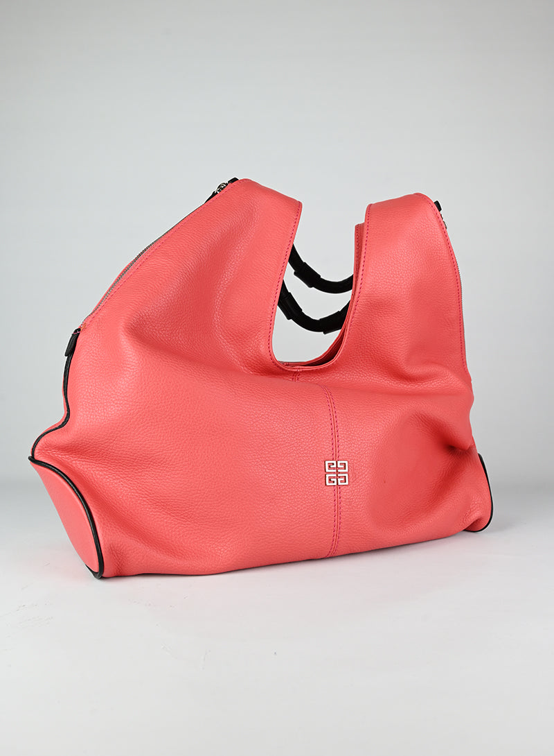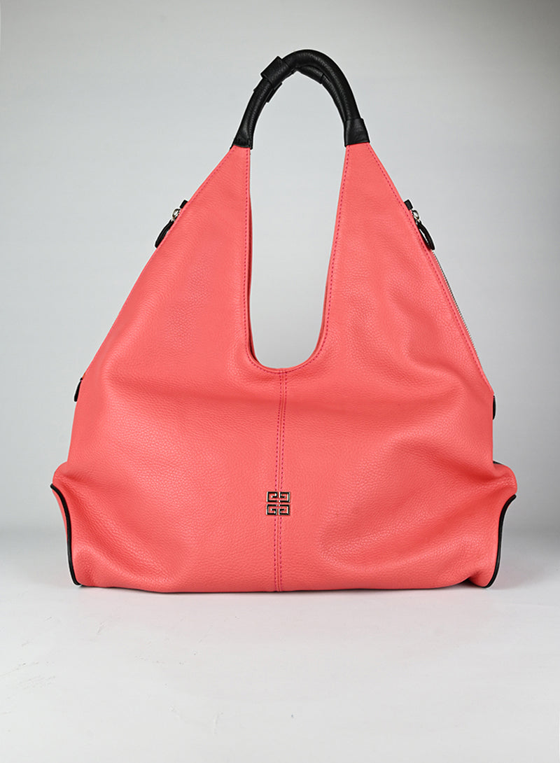 Esalta il tuo stile con la Borsa Hobo Givenchy. Realizzata in pregiata pelle, il delizioso rosa salmone scuro è abbinato con inserti in pelle nera, creando un contrasto elegante e sofisticato. Con due zip laterali argentate, chiusura zip e interno in suede, si presenta come una borsa di design senza eguali.
