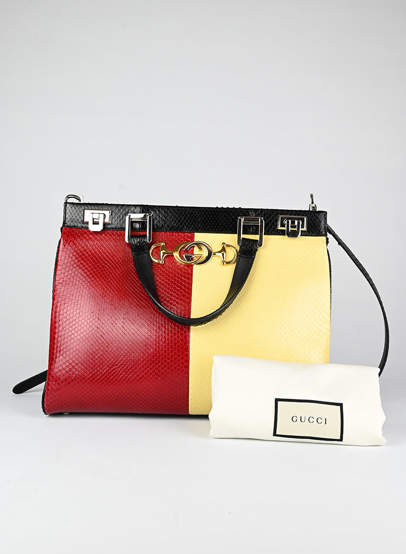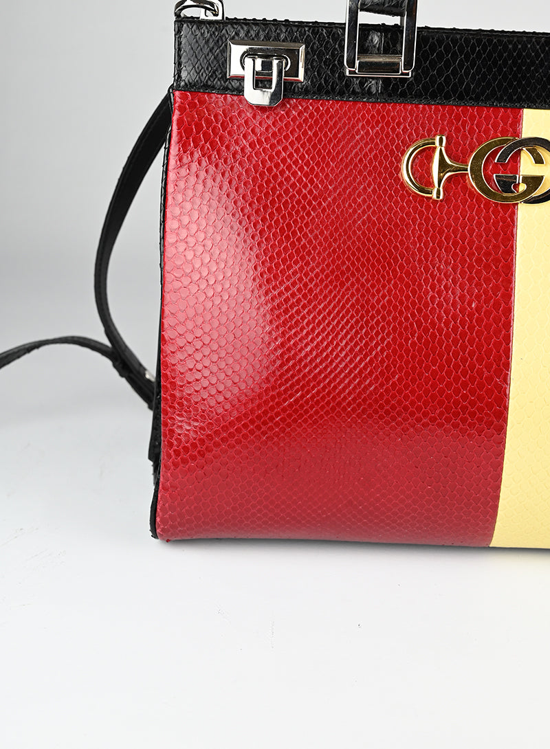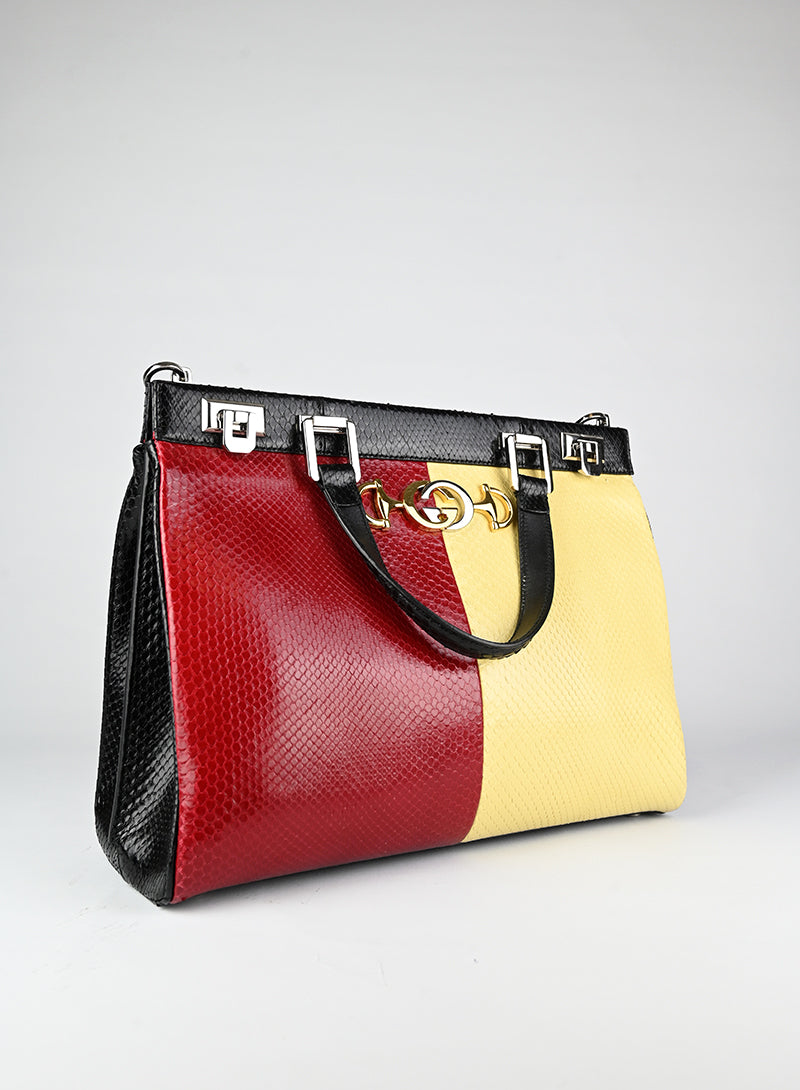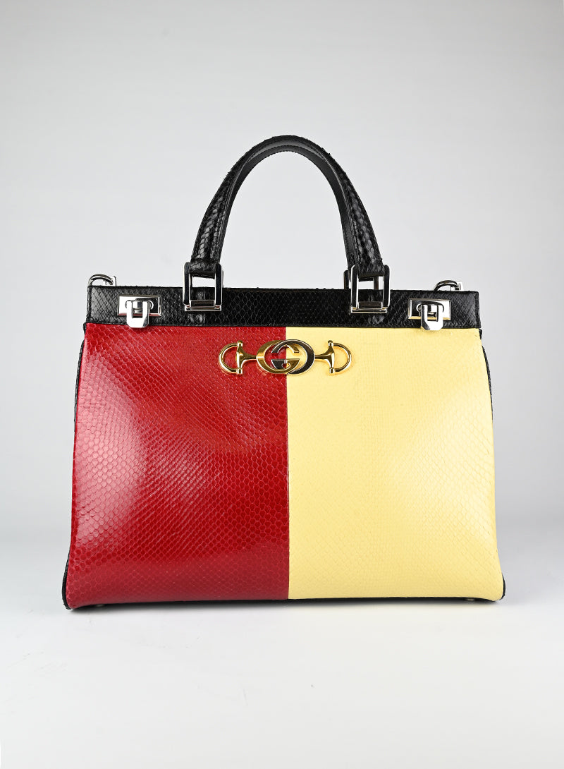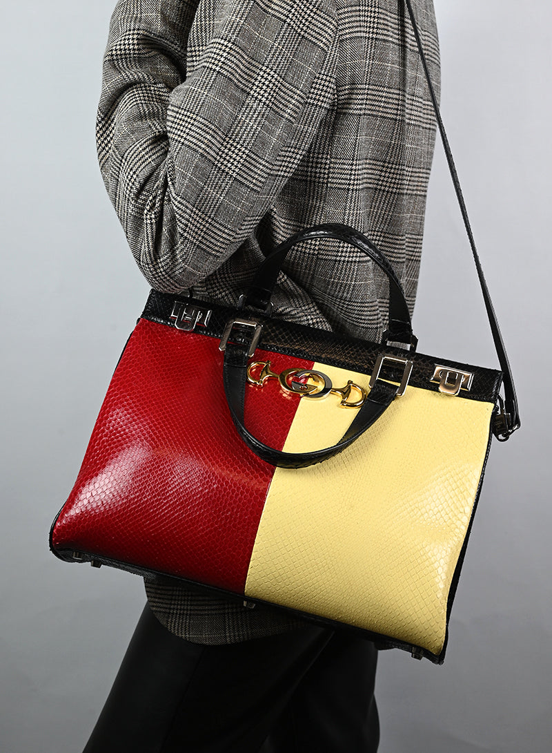 Gucci Borsa in pitone giallo e rosso
