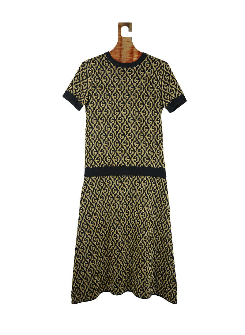 Gucci Completo Pull e Gonna nero e oro con GG - Tg. S