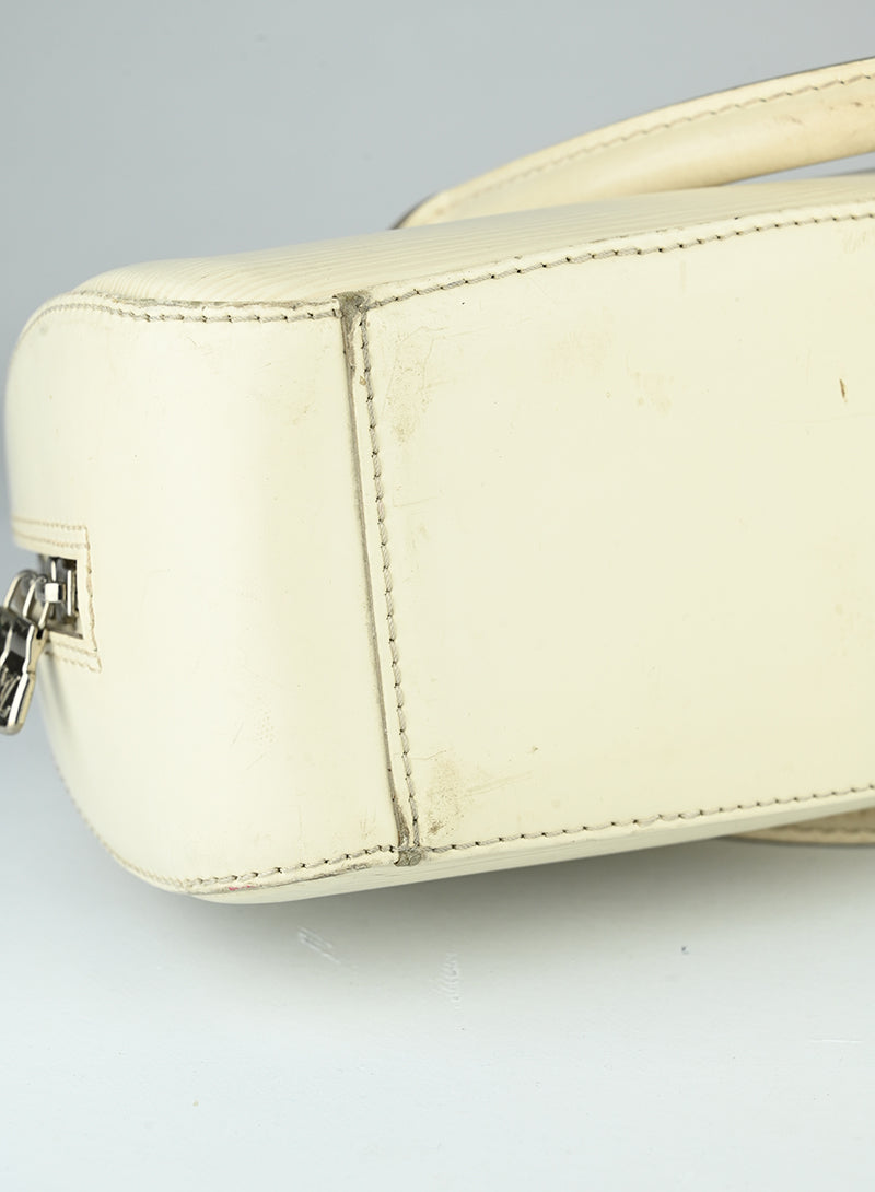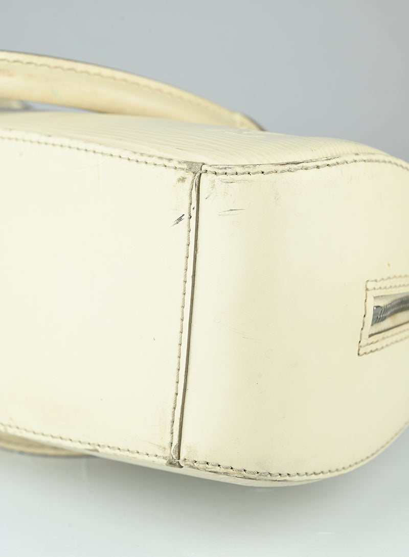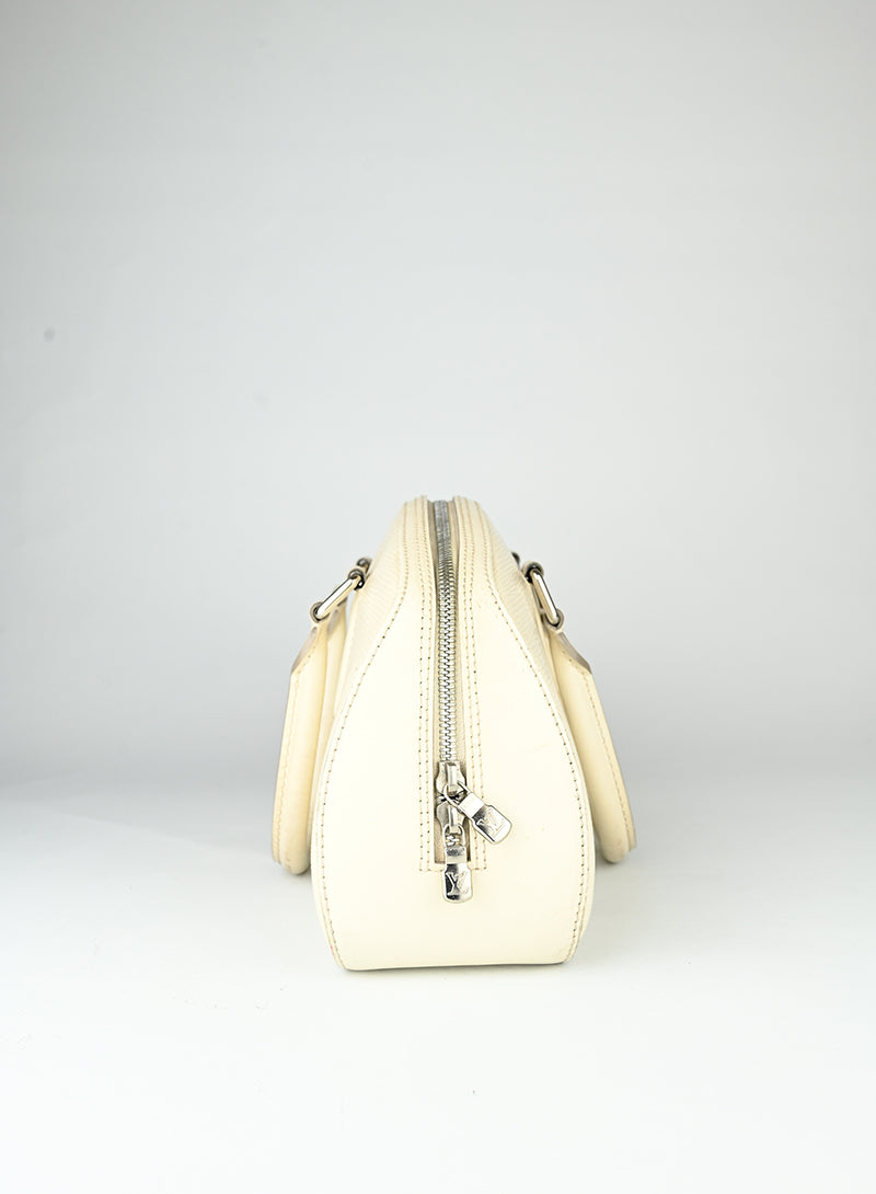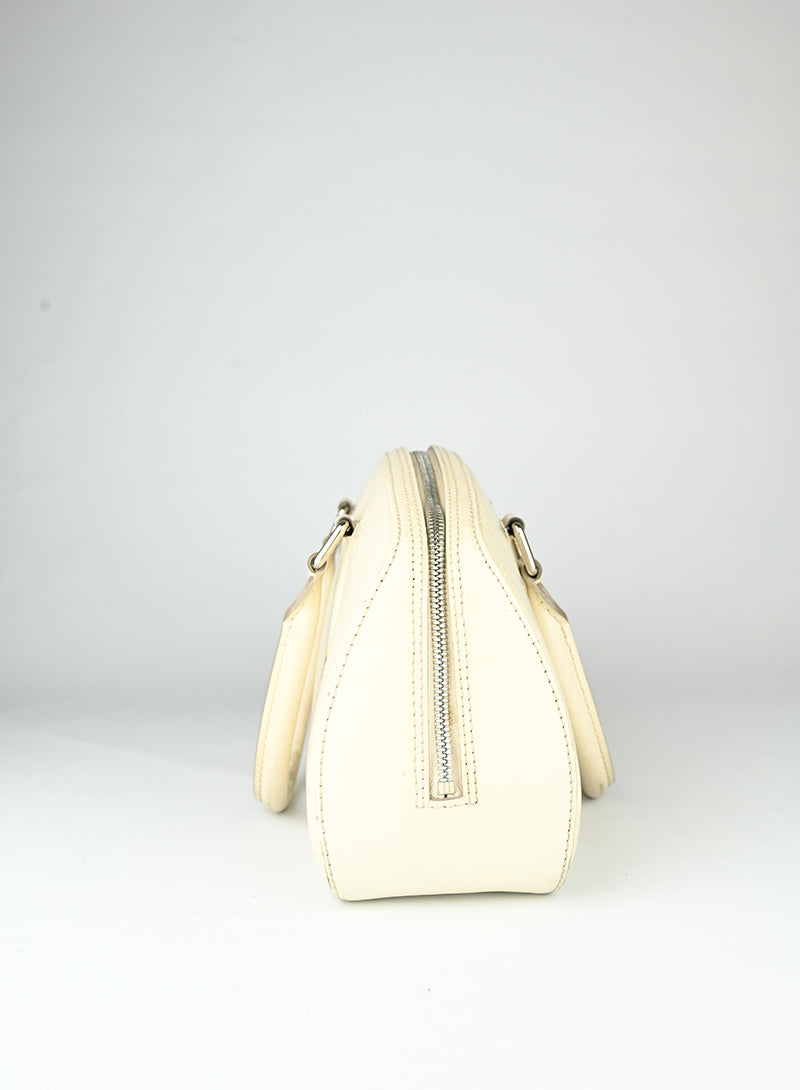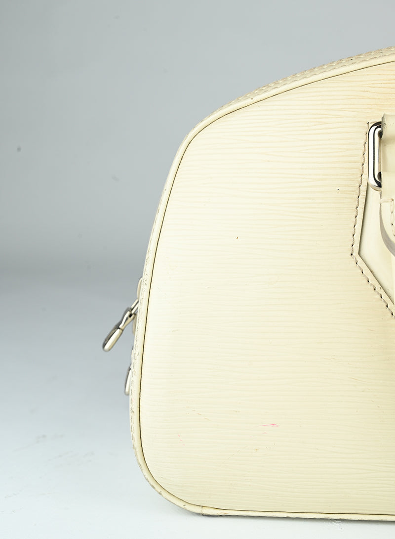 Eleganza senza tempo per chi cerca uno stile raffinato: il Louis Vuitton Bauletto in pelle Epi bianco è caratterizzato da due manici comodi e una chiusura a zip in argento che unisce funzionalità e design. L’interno in morbido suede panna offre un tocco di lusso discreto, ideale per custodire con cura i tuoi essentials quotidiani. Un accessorio sofisticato che unisce l’artigianalità di LV a un’estetica minimalista e pulita.
