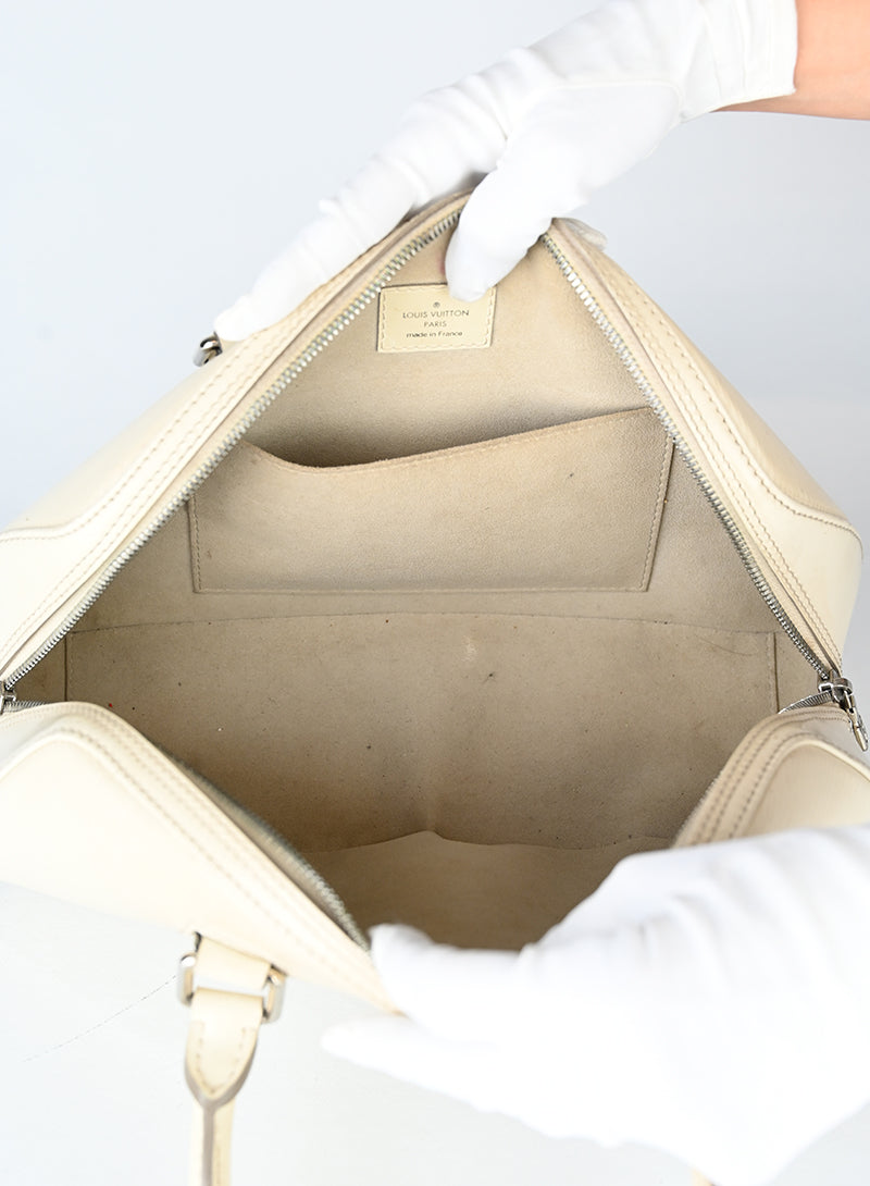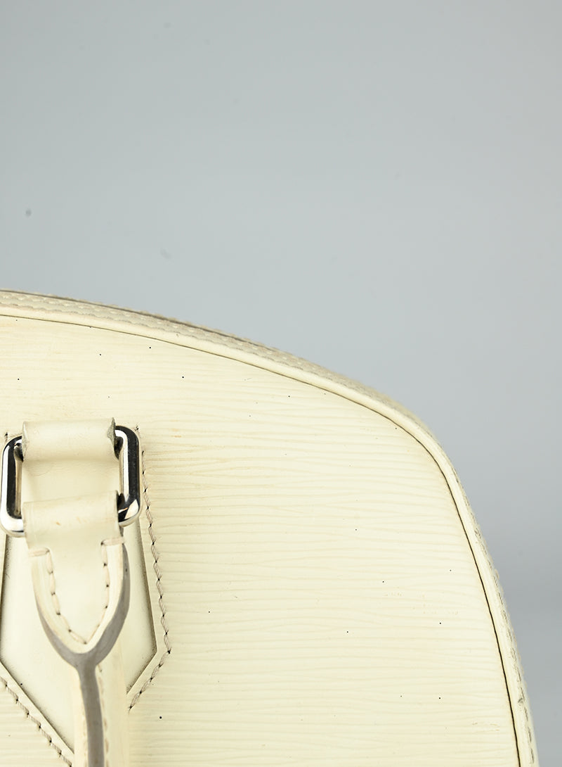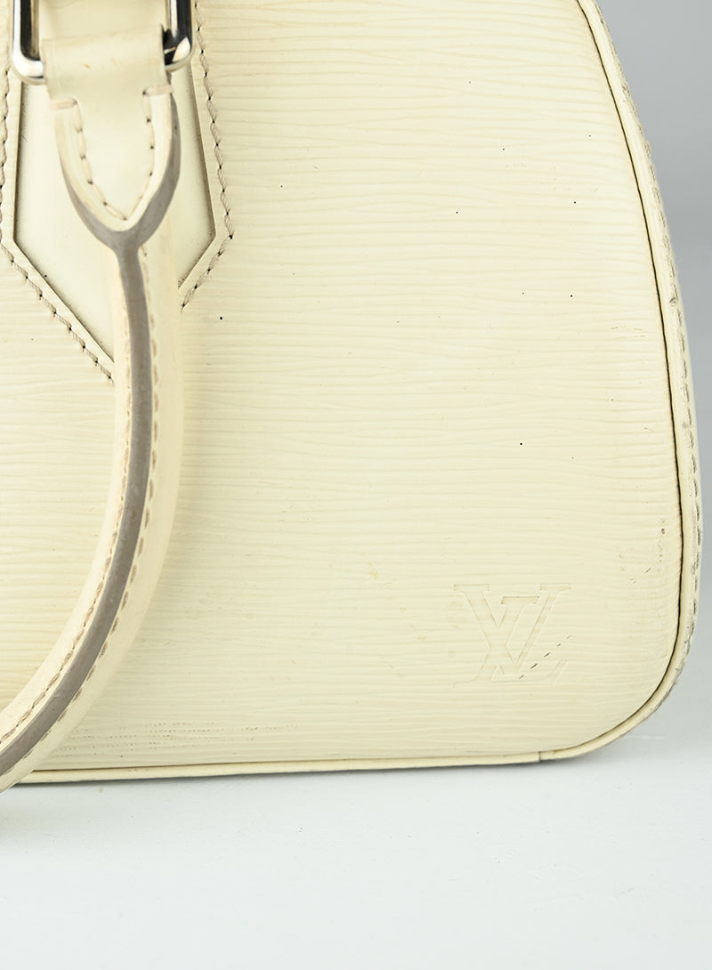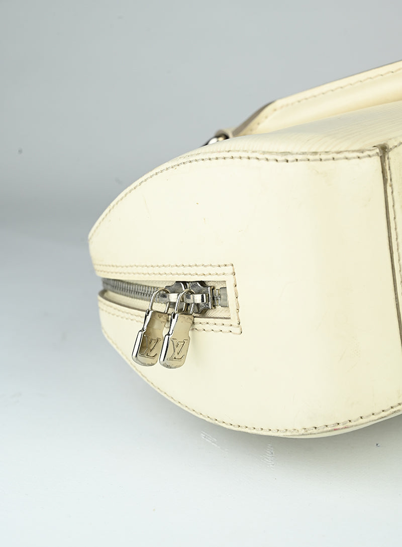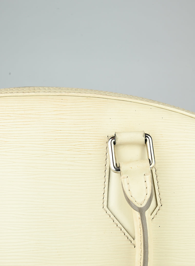 Eleganza senza tempo per chi cerca uno stile raffinato: il Louis Vuitton Bauletto in pelle Epi bianco è caratterizzato da due manici comodi e una chiusura a zip in argento che unisce funzionalità e design. L’interno in morbido suede panna offre un tocco di lusso discreto, ideale per custodire con cura i tuoi essentials quotidiani. Un accessorio sofisticato che unisce l’artigianalità di LV a un’estetica minimalista e pulita.