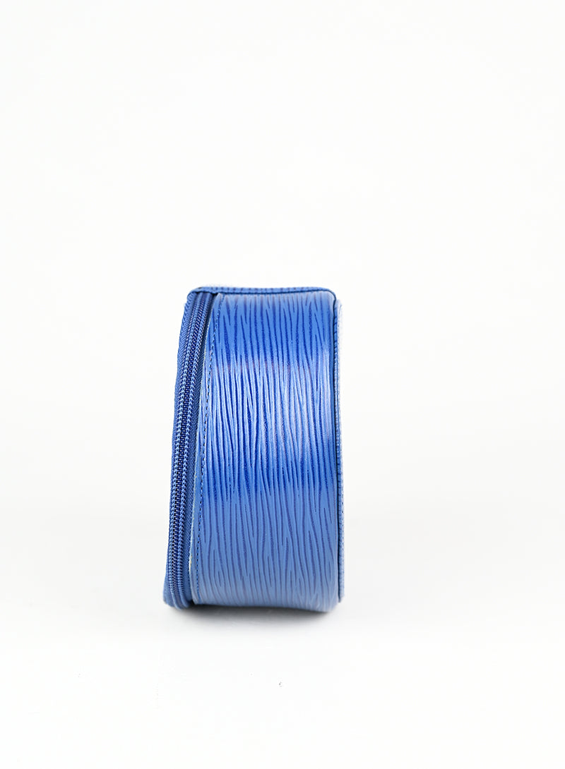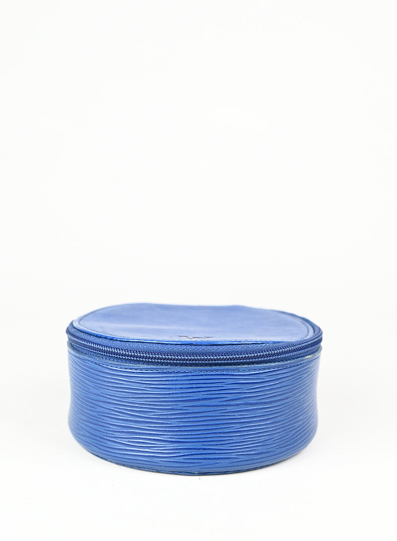 Raffinato beauty case Louis Vuitton realizzato in pregiata pelle Epi blu. La forma circolare elegante e compatta è perfetta per riporre i vostri cosmetici preferiti con stile. Caratterizzato dal logo Vuitton impresso sulla superficie esterna e da una pratica chiusura con zip, garantisce sicurezza e praticità. L'interno rivestito in morbida suede grigio offre protezione delicata ai vostri prodotti beauty.