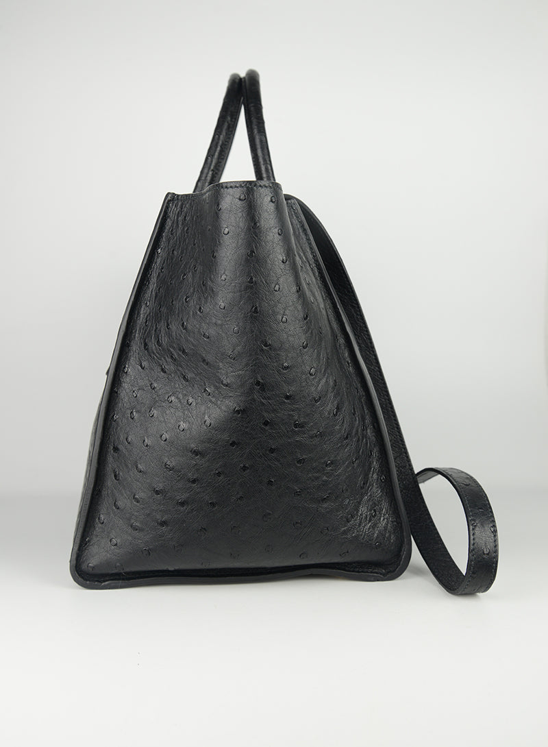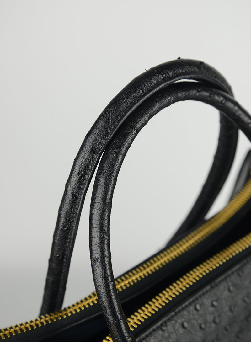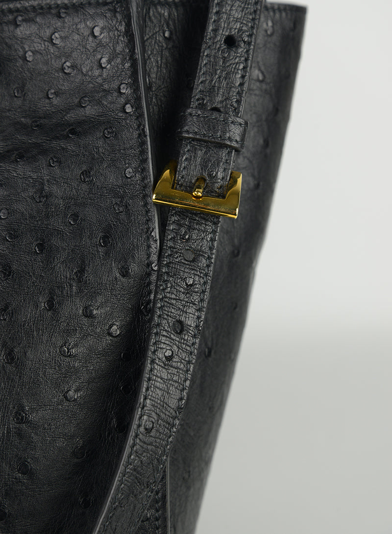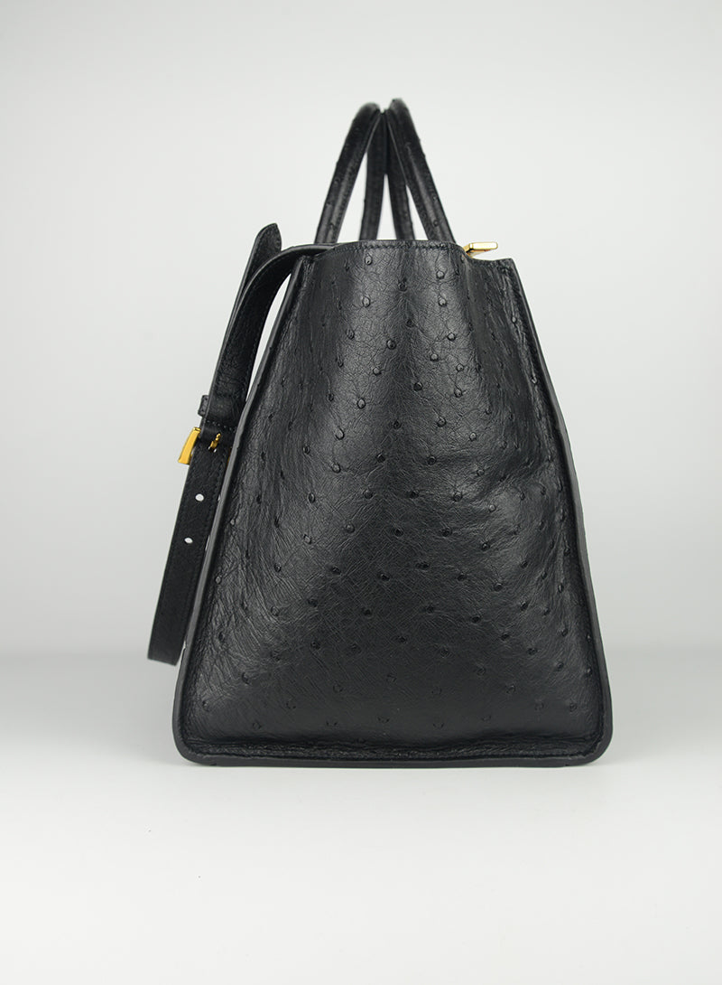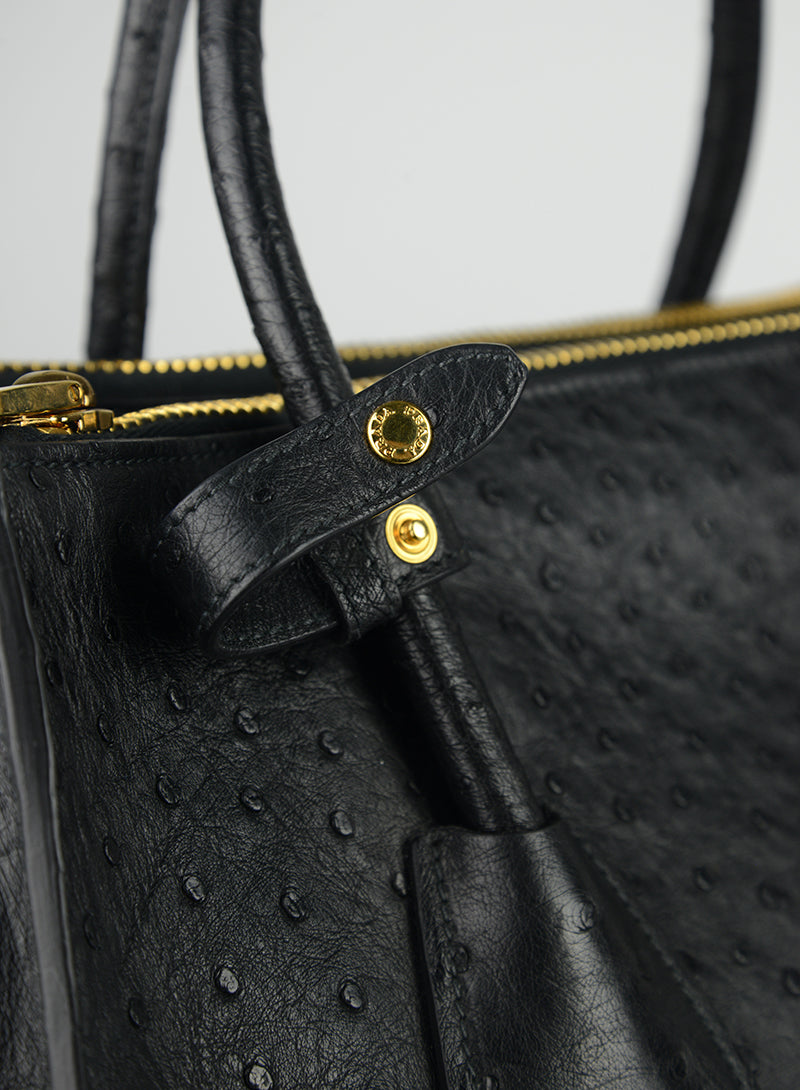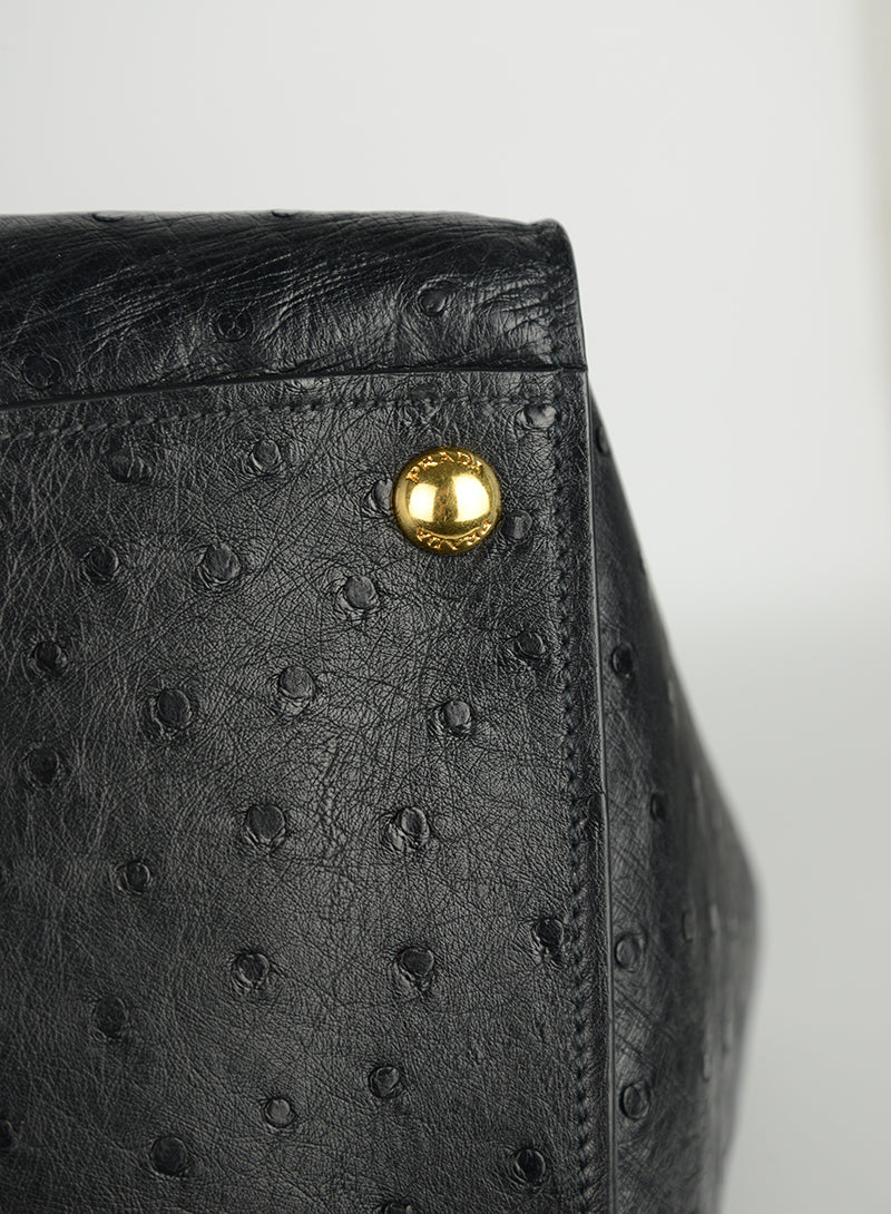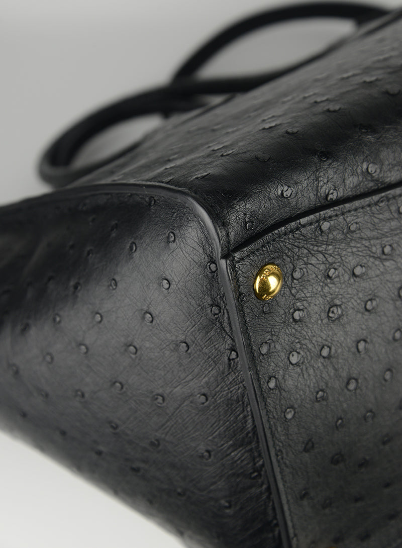 La borsa Prada in pregiata pelle di struzzo unisce eleganza e funzionalità con i suoi 3 scompartimenti, tra cui 2 con zip, e tasca con zip interna. Con hardware oro e chiusura magnetica, può essere portata a mano o a spalla con la tracolla. Aggiunge un tocco di lusso a ogni outfit.