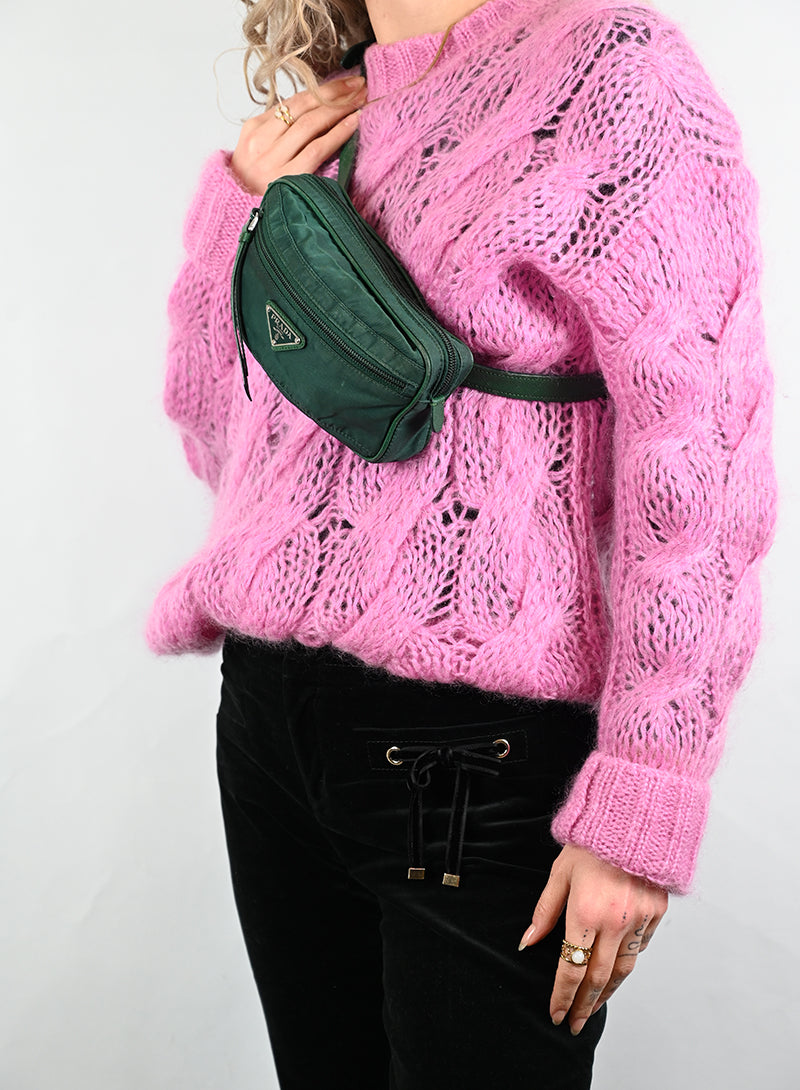 Marsupio Prada in re-nylon verde con profili in pelle Saffiano, perfetto per chi ricerca praticità senza compromessi stilistici. Dotato di una tasca anteriore con zip e una superiore con zip per una sicurezza ottimale dei vostri effetti personali. L'interno in tessuto garantisce protezione e durabilità, mentre la cintura in pelle regolabile assicura una vestibilità personalizzata e confortevole. Un accessorio versatile che unisce eleganza e funzionalità, ideale per completare qualsiasi look con raffinatezza.