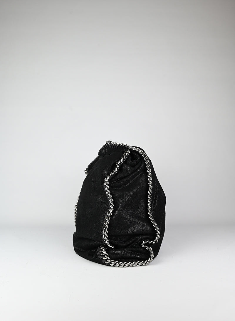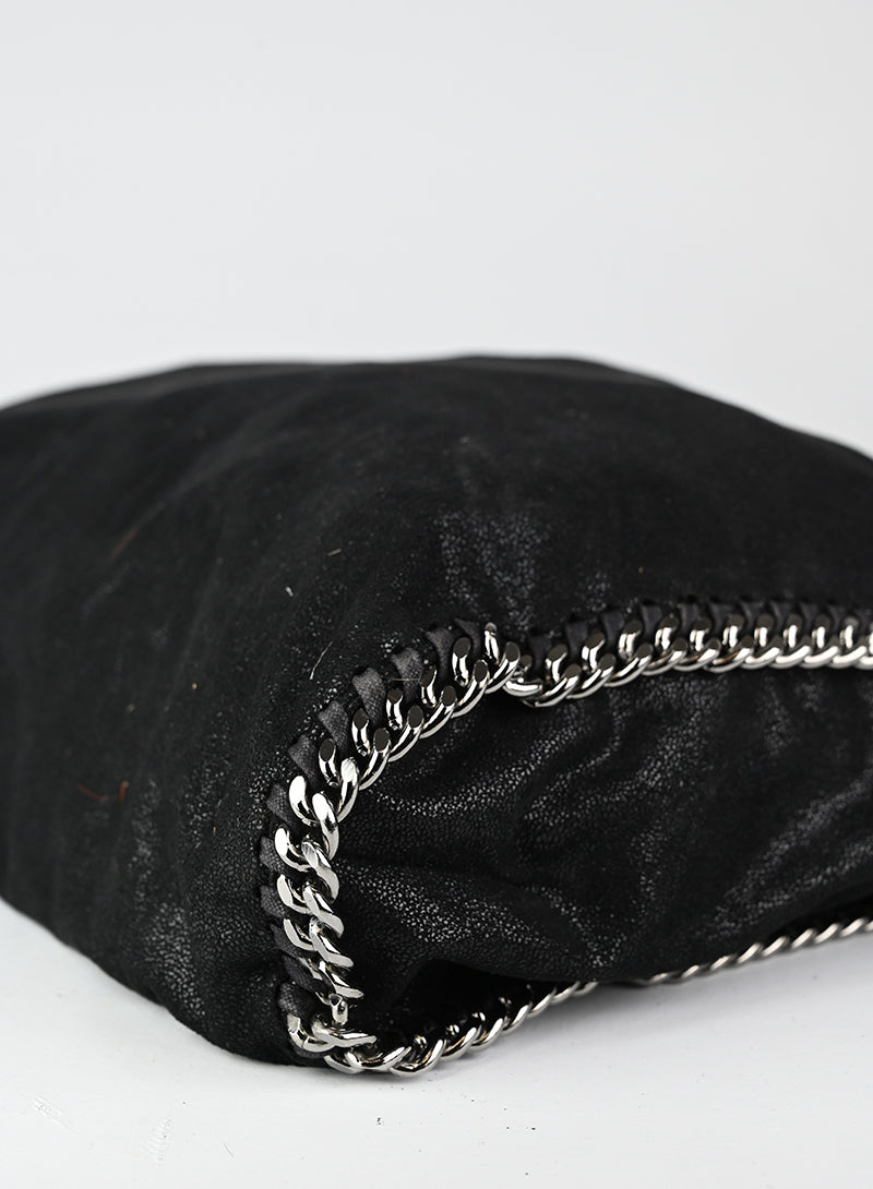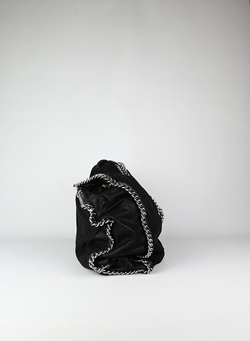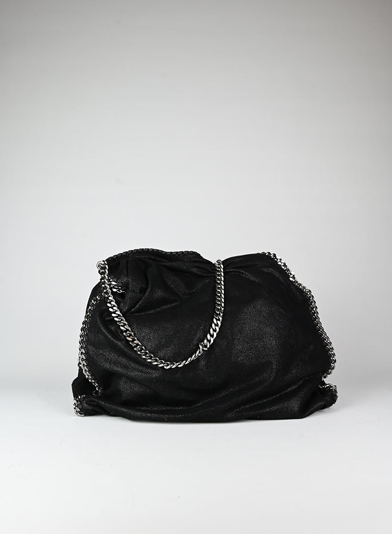 Questa borsa Falabella nera di Stella McCartney è un capolavoro di stile e si distingue per i suoi dettagli unici. I profili e manici in catena di metallo aggiungono una nota di lusso, mentre la medaglietta tonda in metallo la rende ancora più esclusiva. L'interno in tessuto beige e la pochette nera removibile la rendono versatile e funzionale.