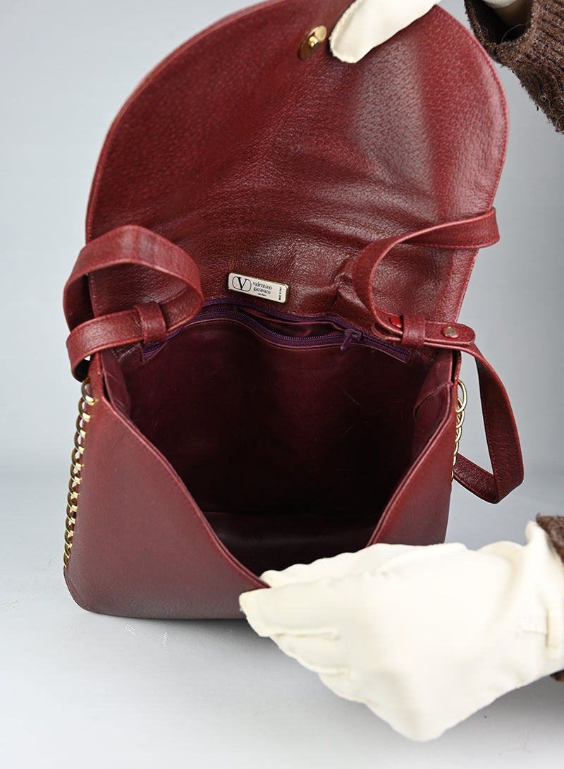 Scopri la nostra esclusiva Valentino Borsa in pelle bordeaux. Con la sua tracolla in pelle bordeaux e i profili laterali decorati da anellini metallici dorati, questa borsa offre uno stile lussuoso e sofisticato. Il logo V impresso su patta aggiunge un tocco di eleganza. Grazie alla chiusura magnetica e alla tracolla removibile, è la scelta perfetta per uno stile di vita dinamico. L'interno in pelle bordeaux con una taschina zip fornisce lo spazio ideale per i tuoi oggetti di valore.