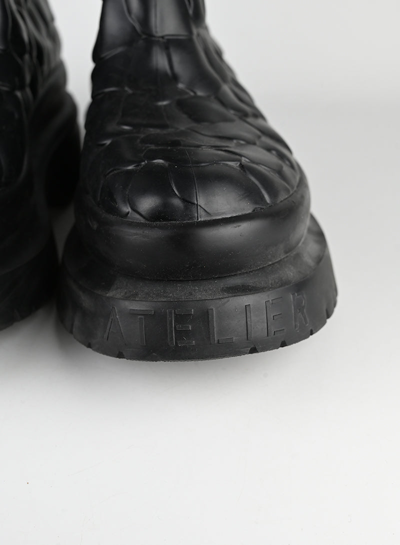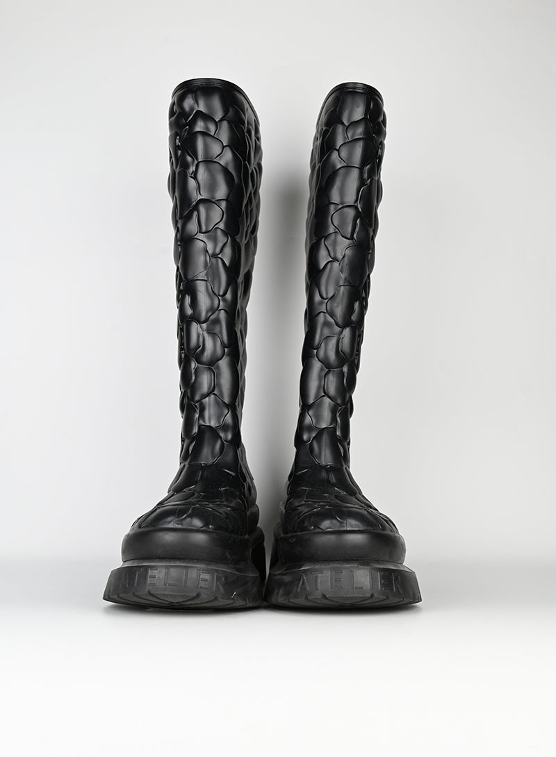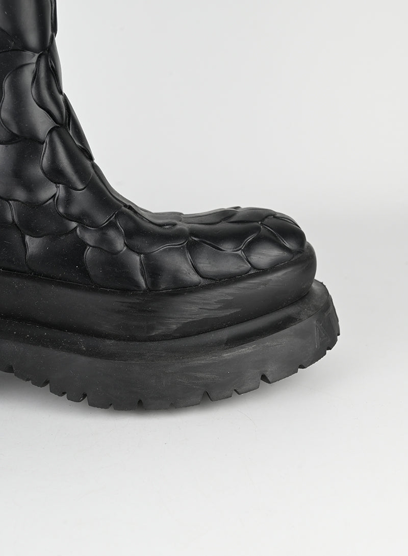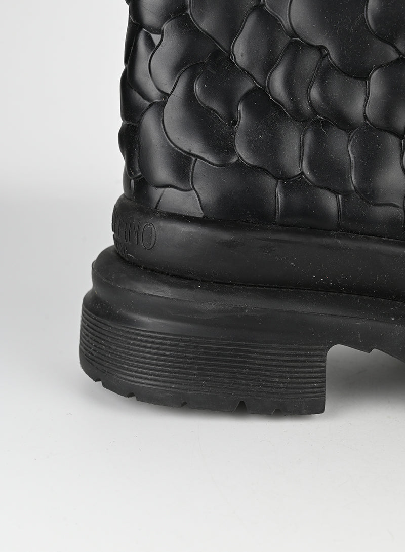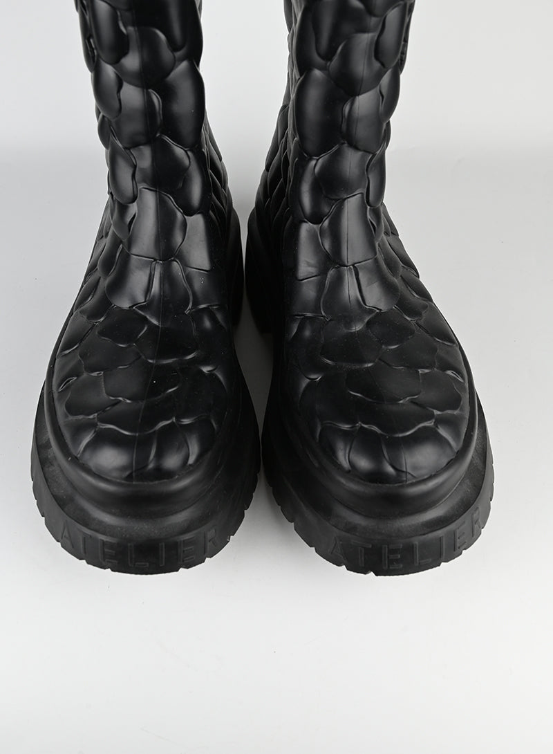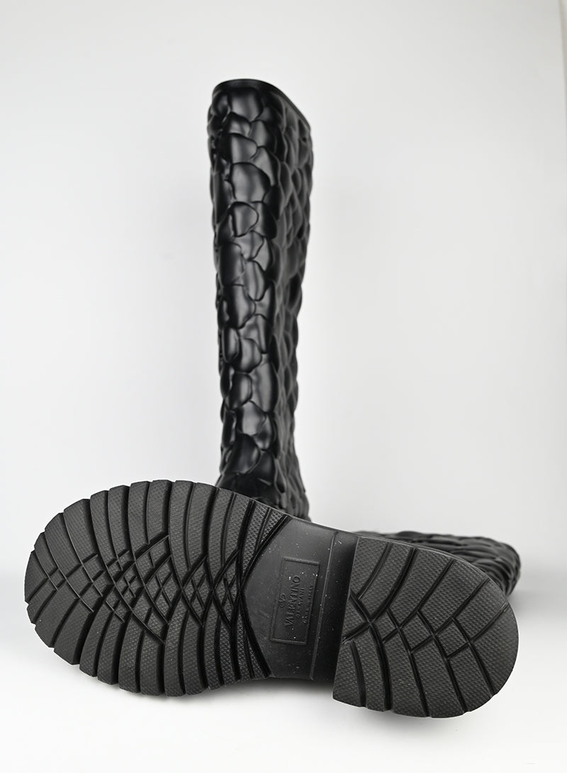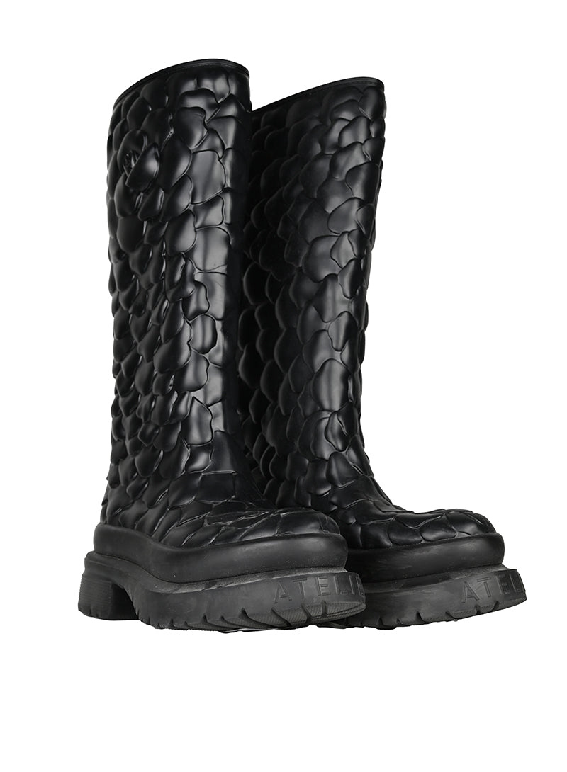 Esalta i tuoi look con gli eleganti Stivali in gomma Rose edition Valentino. Realizzati in nero lucido, con para alta e tacchetto, questi stivali uniscono funzionalità e stile. Il design unico con petali su tutta la superficie aggiunge un tocco di femminilità e glamour al tuo outfit.
